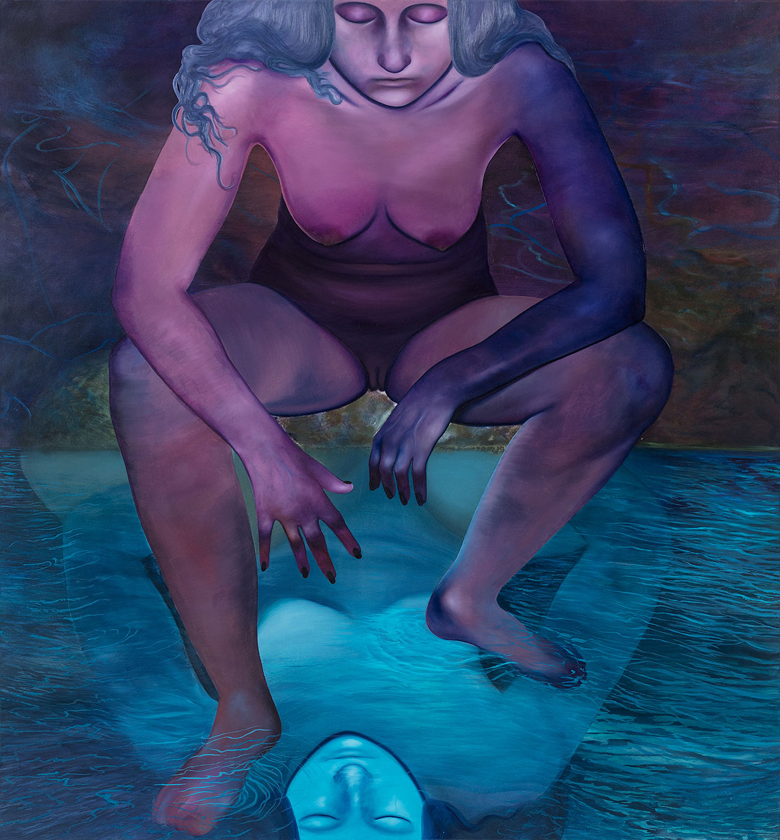 Kompozycja jest doskonałym przykładem charakterystycznej dla Stasik, pracochłonnej techniki laserunkowej, gdzie staranne nakładanie cienkich, transparentnych warstw farby olejnej i akrylowej buduje niezwykłą, wibrującą głębię kolorystyczną i subtelny modelunek postaci. Aura obrazu, utrzymana w wyrafinowanej palecie barw, wzmacnia poczucie intymności i spirytualnej intensywności.