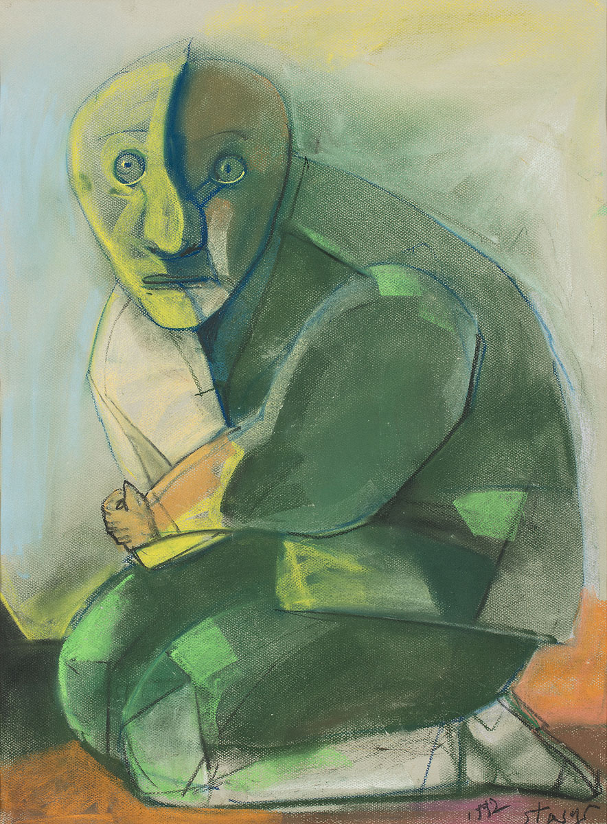 sygn. p.d.: 1992 Stasys, opisany na odwrociu p.d.: GREEN / pastel / 1992 / 29 1/2 x 21 1/2 inch [nieczytelnie] "zielony człowiek" 1992