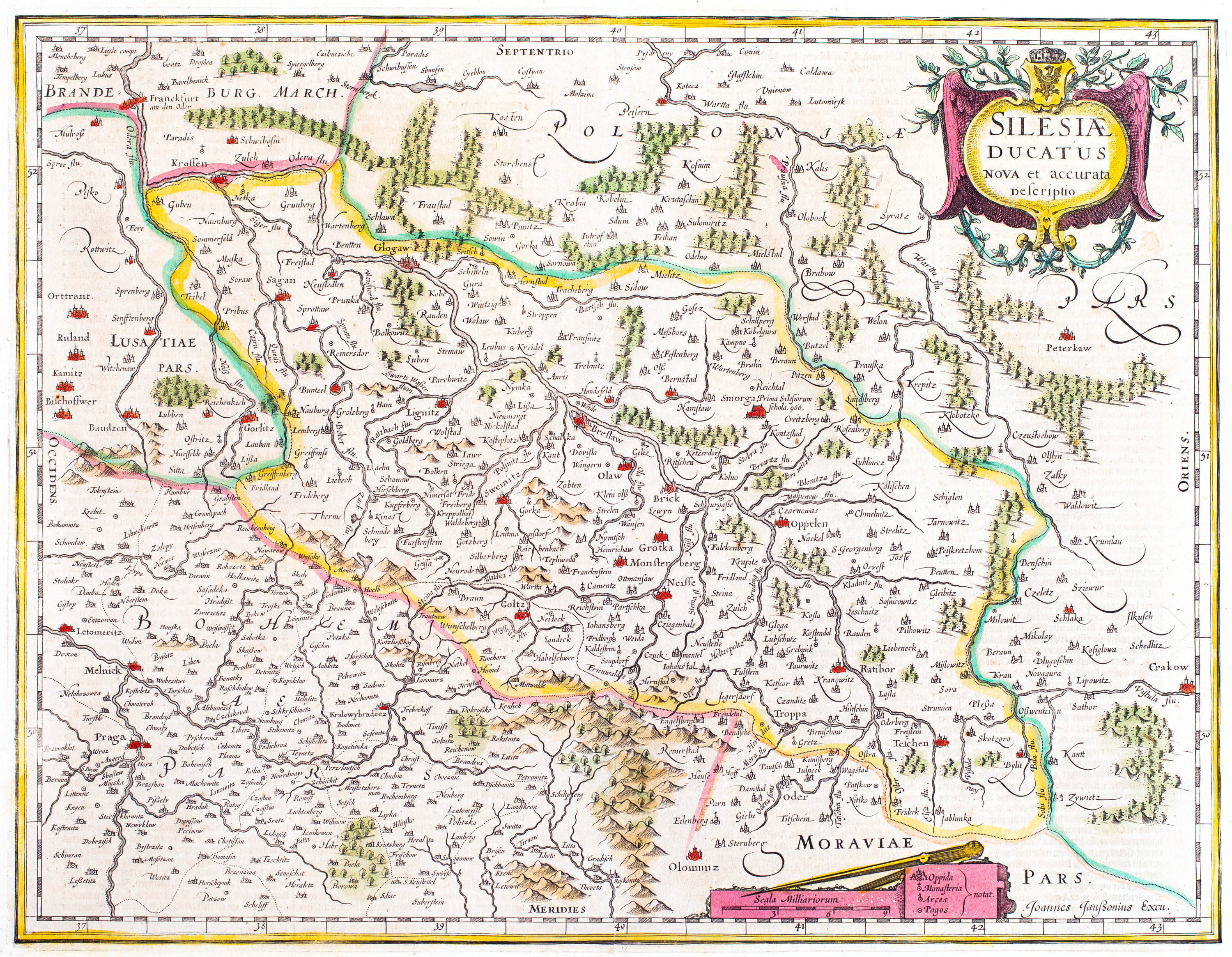 Mapa Śląska, wyd. Frederick de Wit, Amsterdam, 1688; na verso tekst w języku niderlandzkimmiedzioryt kolorowany w epoce, 39,5 x 51 cm (odcisk płyty)stan zachowania: po konserwacji
