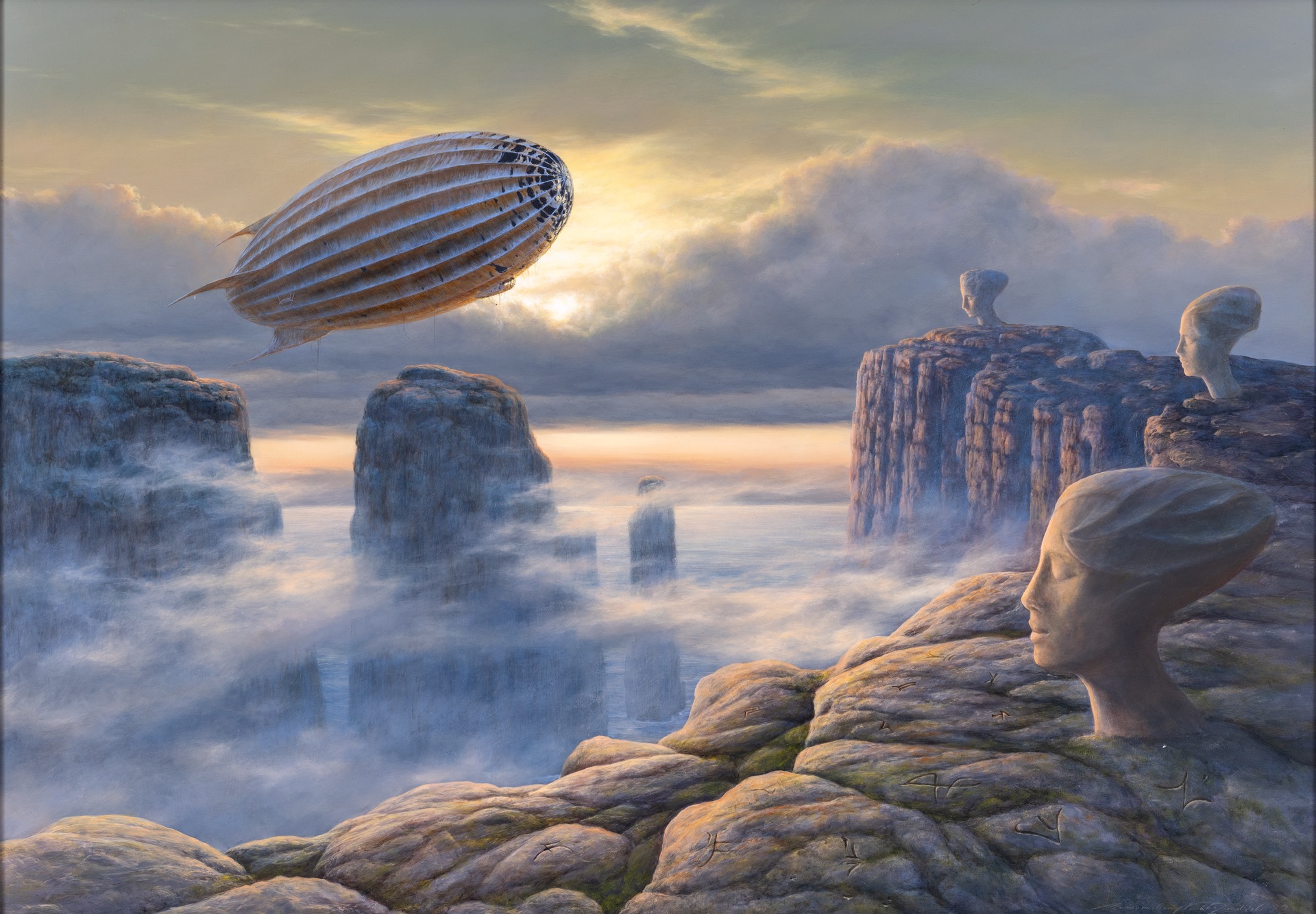 olej, płyta, 73 x 103 cm,sygnowany na odwrocie: '"Ferrivaria in nubibus" | Maksymilian Novak-Zempliński | 2024'