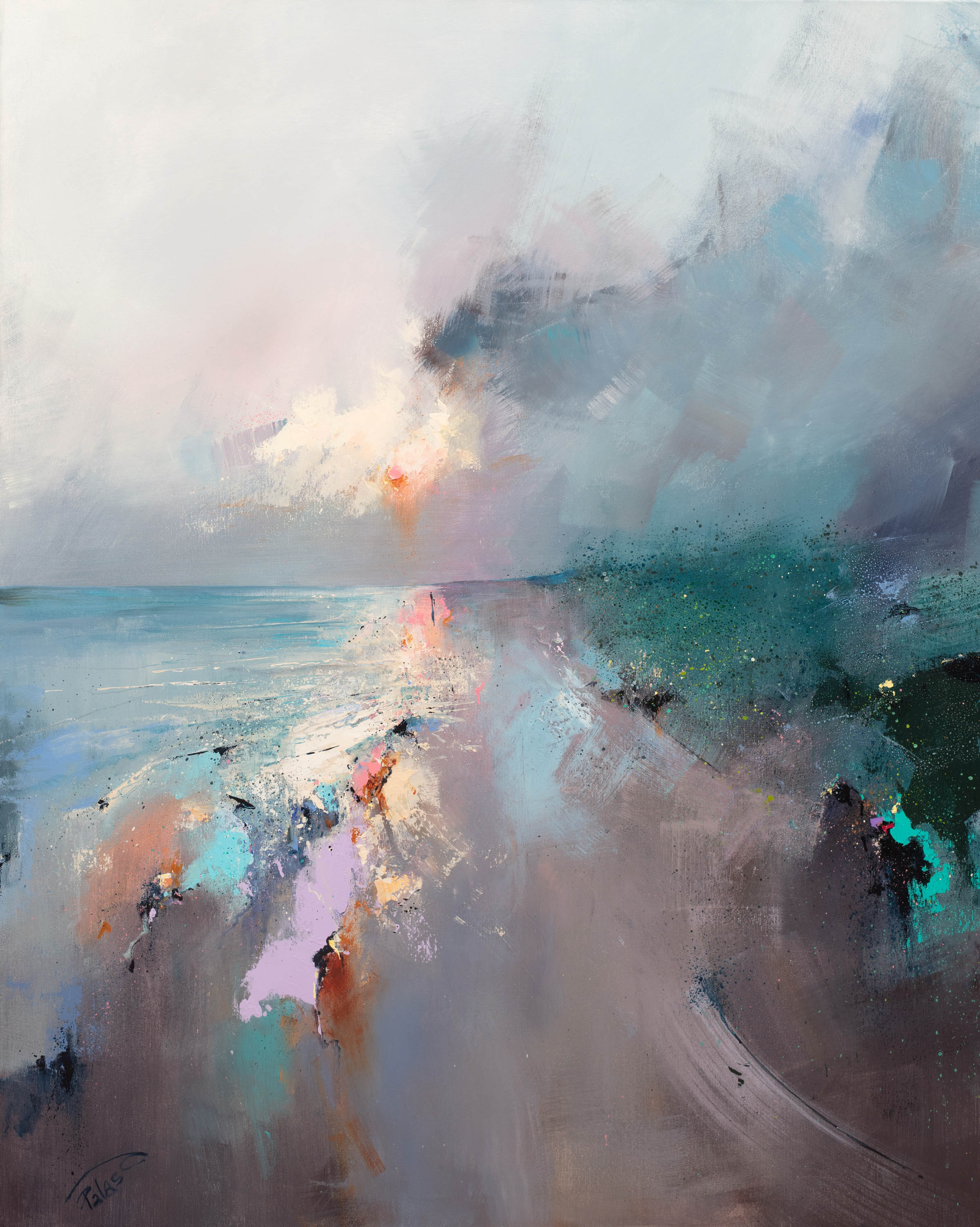 akryl, płótno, 100 x 80 cm,sygnowany l .d.: "Palas" i opisany na odwrocie: "Patryk Palas | 2025 | Ślady światła"