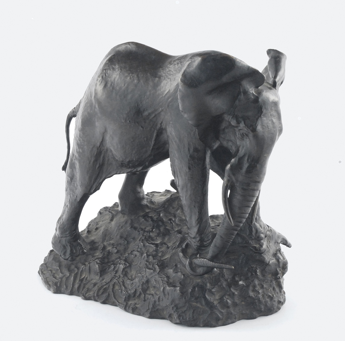 Podstawa w formie nieregularnej skały; stojący na jej zboczu słoń depcze głowę krokodyla, przytrzymując jego ogon trąbą.