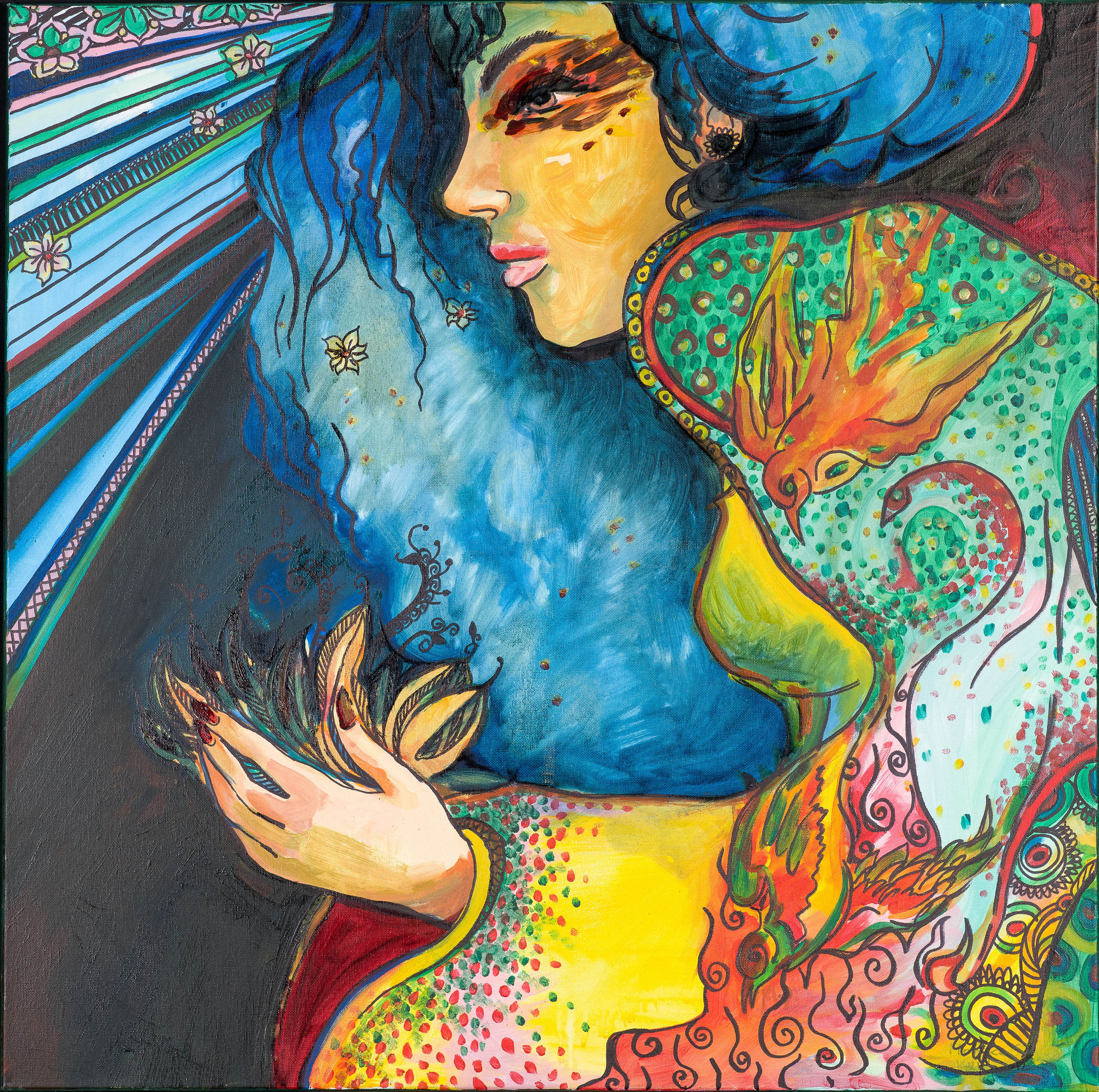 akryl, marker na płótnie, 90 x 90 cm, sygn.