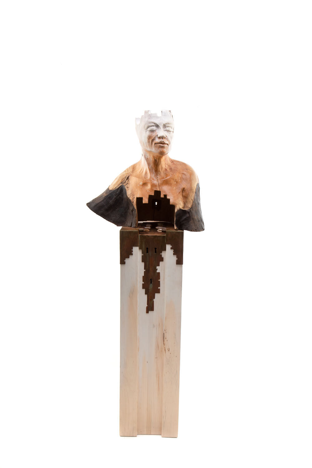 drewno, kamień, metal, 150 x 52 x 31 cmsygnowany, datowany i opisany: 'SMAROS LUNA | 2020 | S'na cokole pieczęć autorska