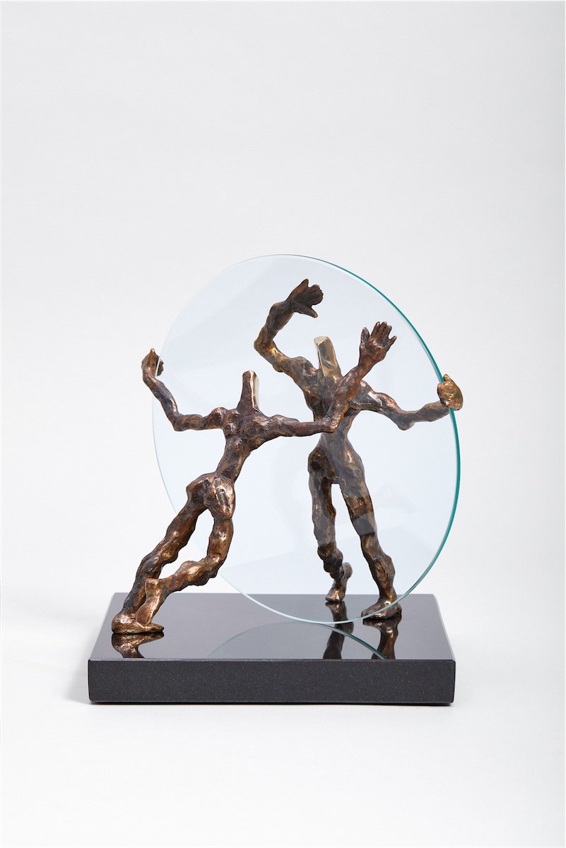 brąz, szkło/ bronze, glass, 25 x 23 x 23 cm