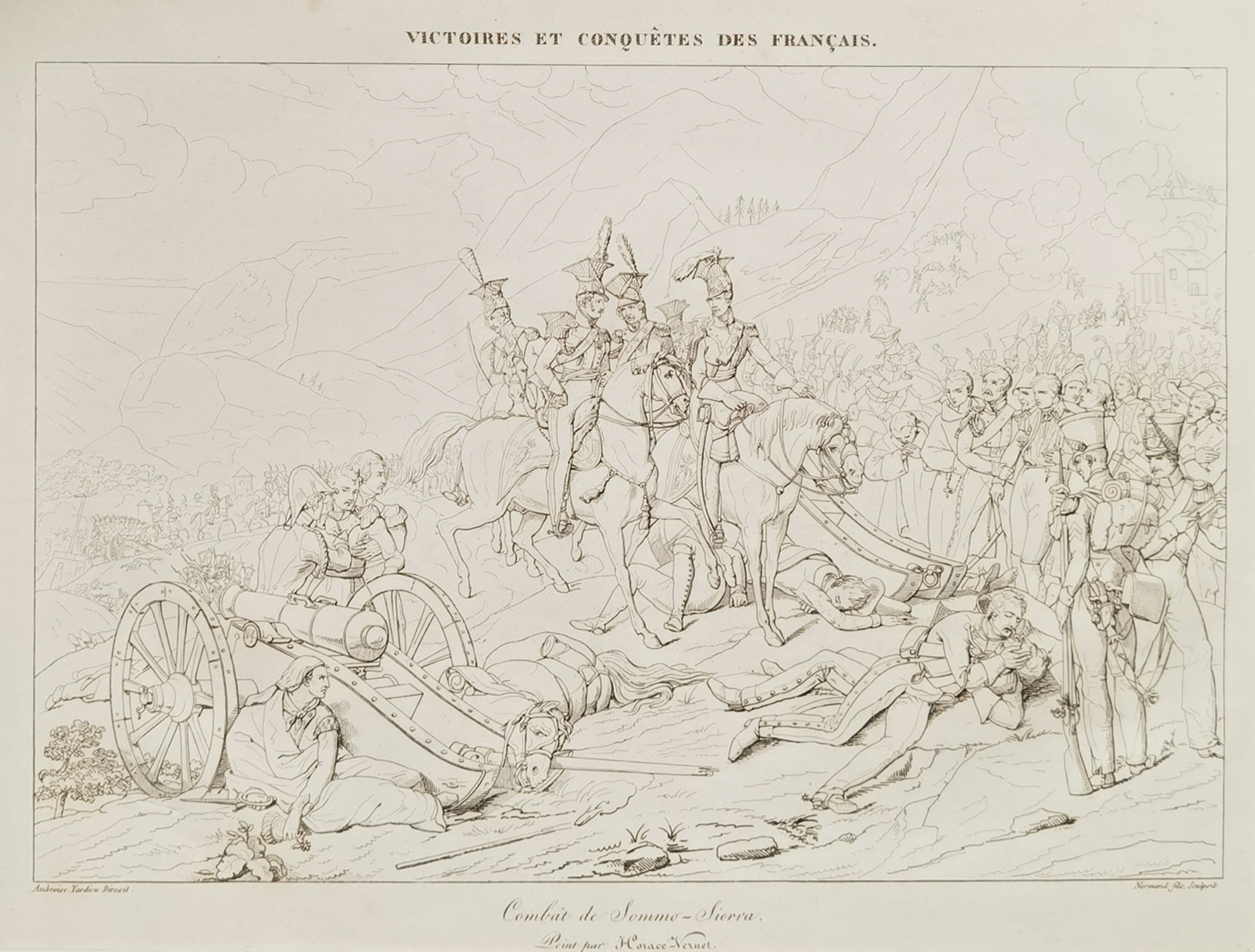 Kup abonament Wykup abonament, aby zobaczyć więcej informacjiW centralnej części ukazana grupa jeźdźców - polskich oficerów: Wincenty Krasiński (dowódca pułku), Tomasz Łubieński (dowódca 1. szwadronu), Jan Kozietulski (dowódca 2. szwadronu) i Jan Nepomucen Dziewanowski (kapitan) po zdobyciu przełęczy Somosierra.