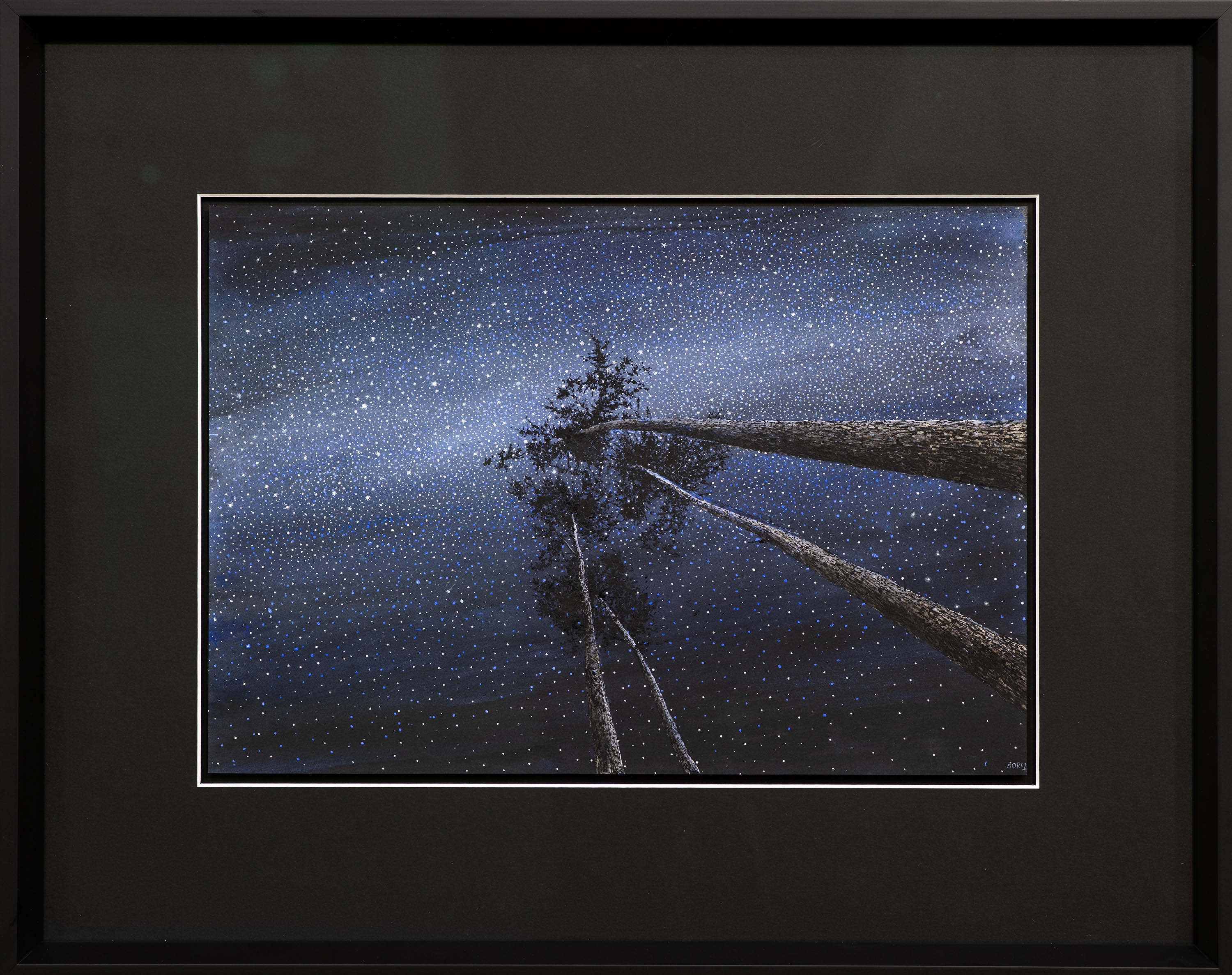 akwarela, papier, 27 x 39 cm (oprawiony),sygnowany p.d. oraz opisany na odwrocie: Rafał Borcz | „Sosny i gwiazdy” ( z cyklu Gwiazdy i drzewa) | akwarela 2026’