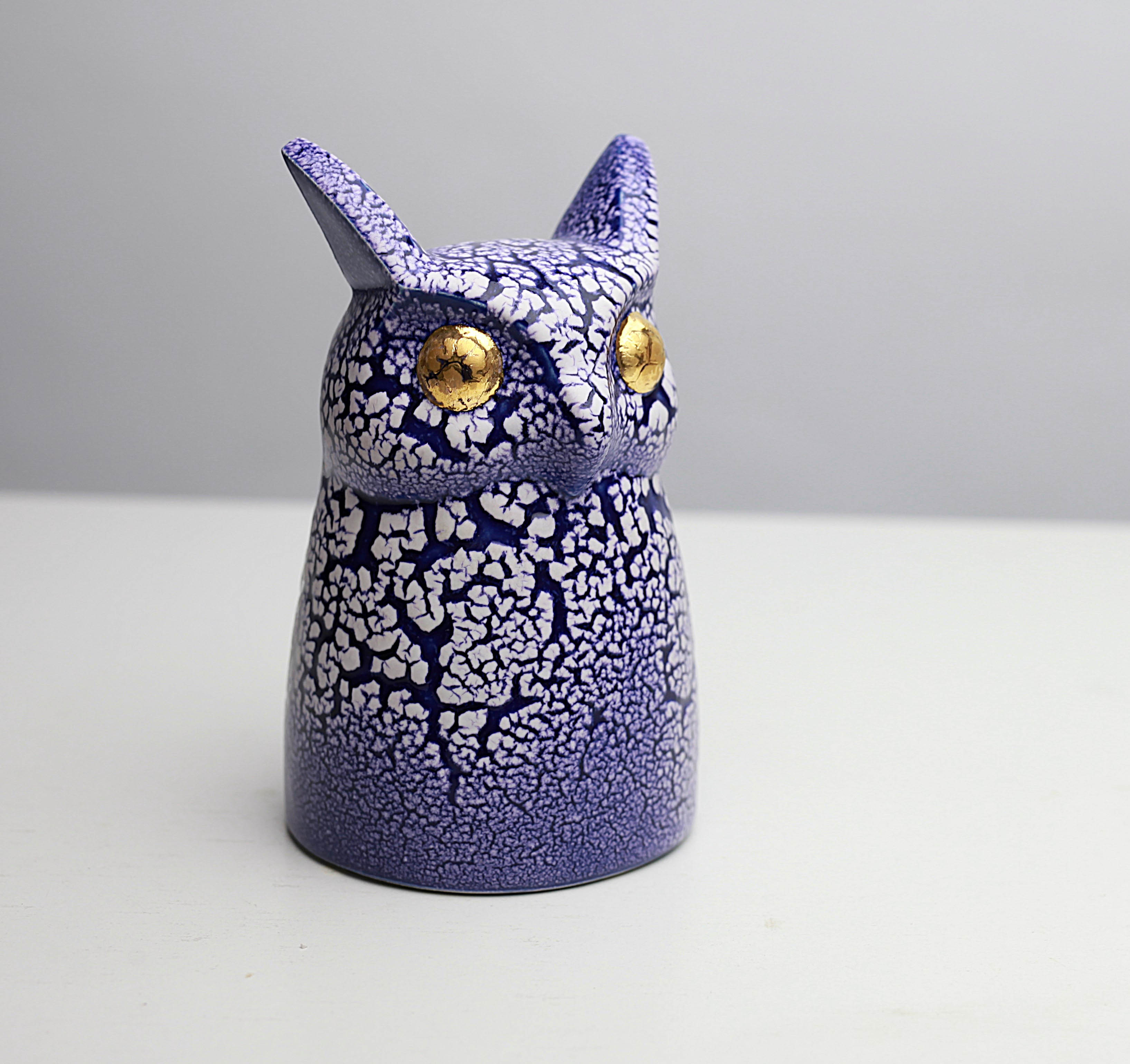 ceramika szkliwiona ze szkliwem efektownym, złocona, 12,5 x 7 x 7,5 cmod spodu logo autorki, studia i opis numeryczny 3/2021.