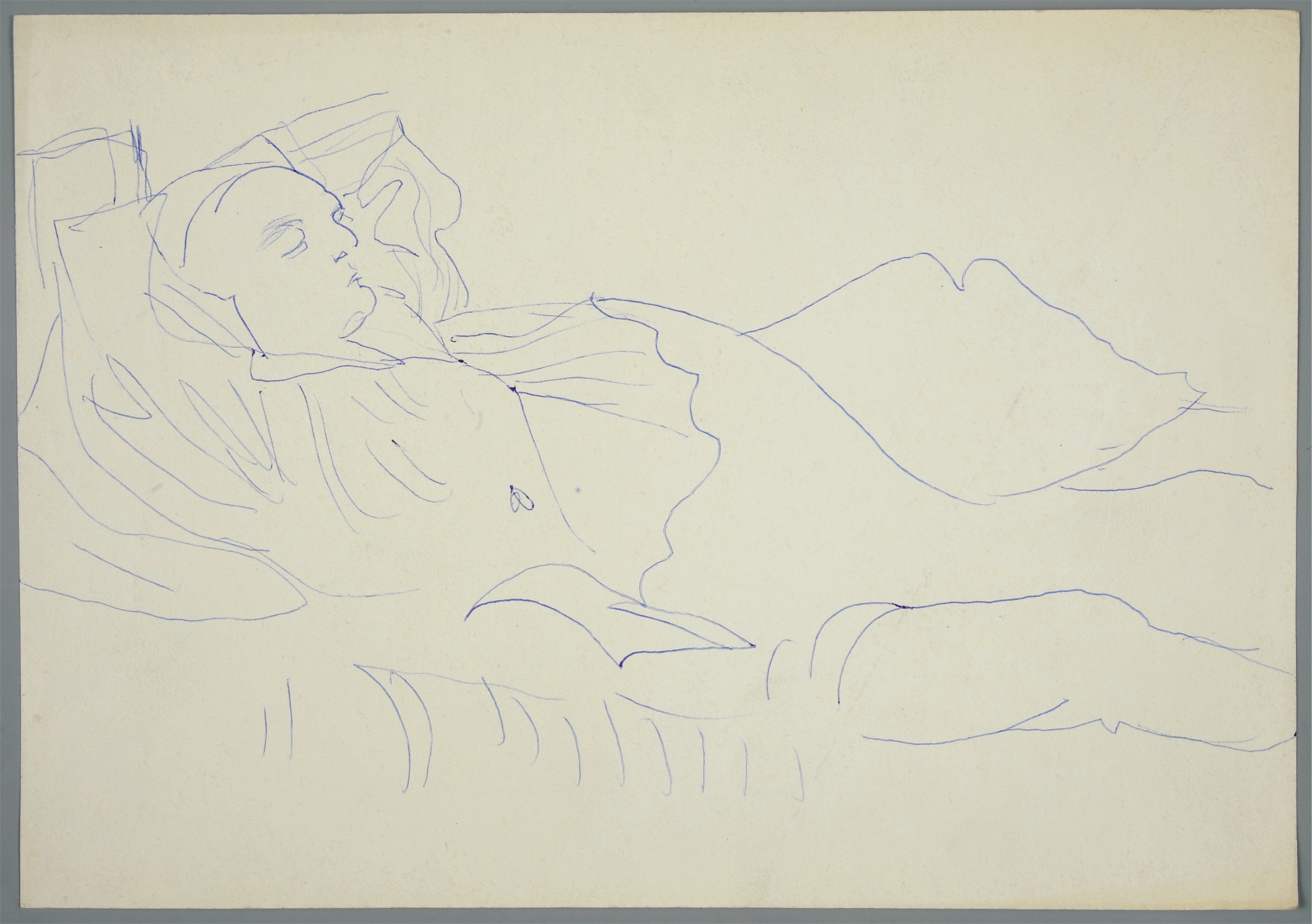 Śpiący mężczyzna leżący w pościeli, ok. 1970
