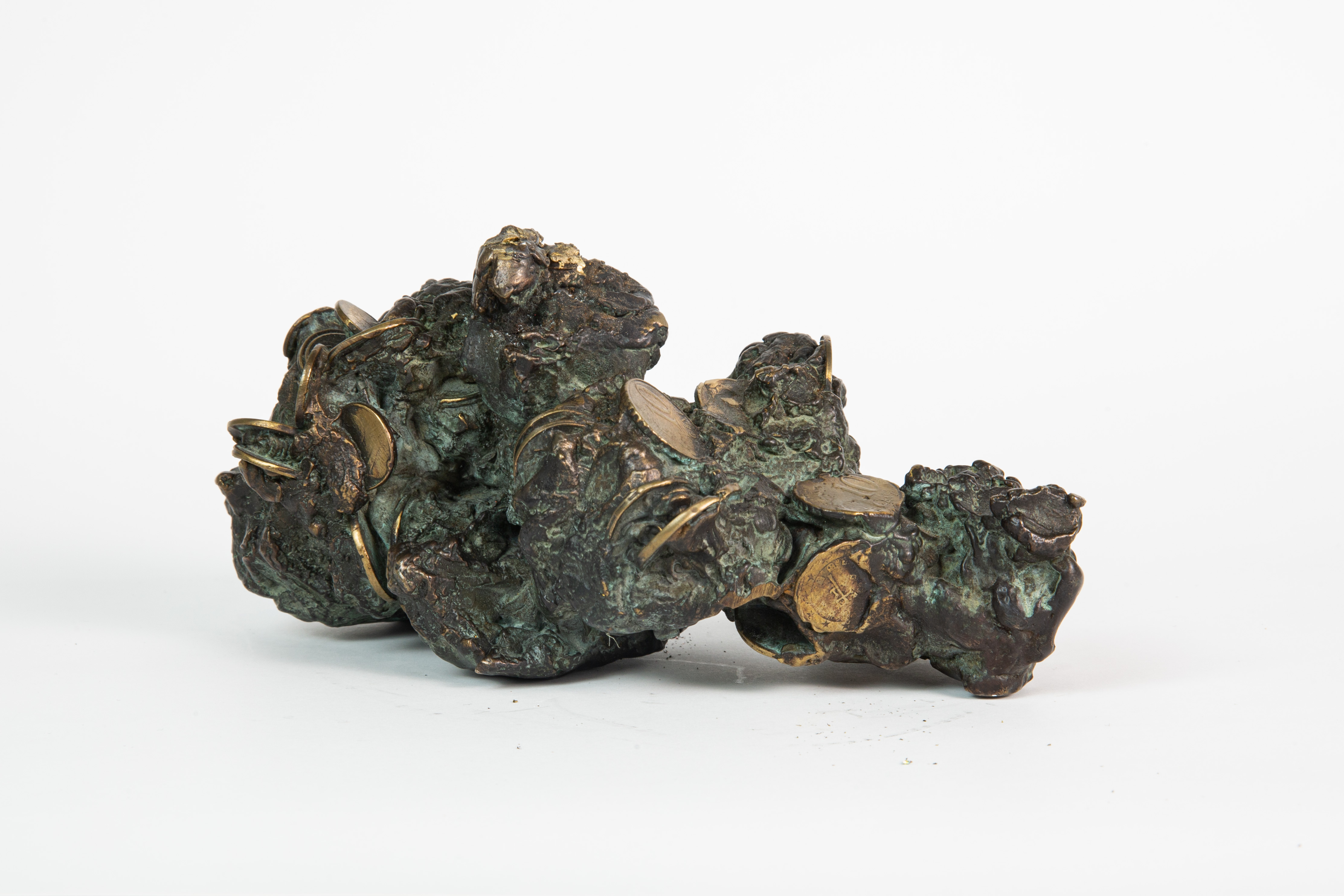 Rzeźba odlana z brązu, formą inspirowana jest spiekiem koksowy - odpad powstający w ogniu kuźni. W jej strukturze widoczne są zatopione, przetopione monety pozostałe z osobistych podróży artysty.