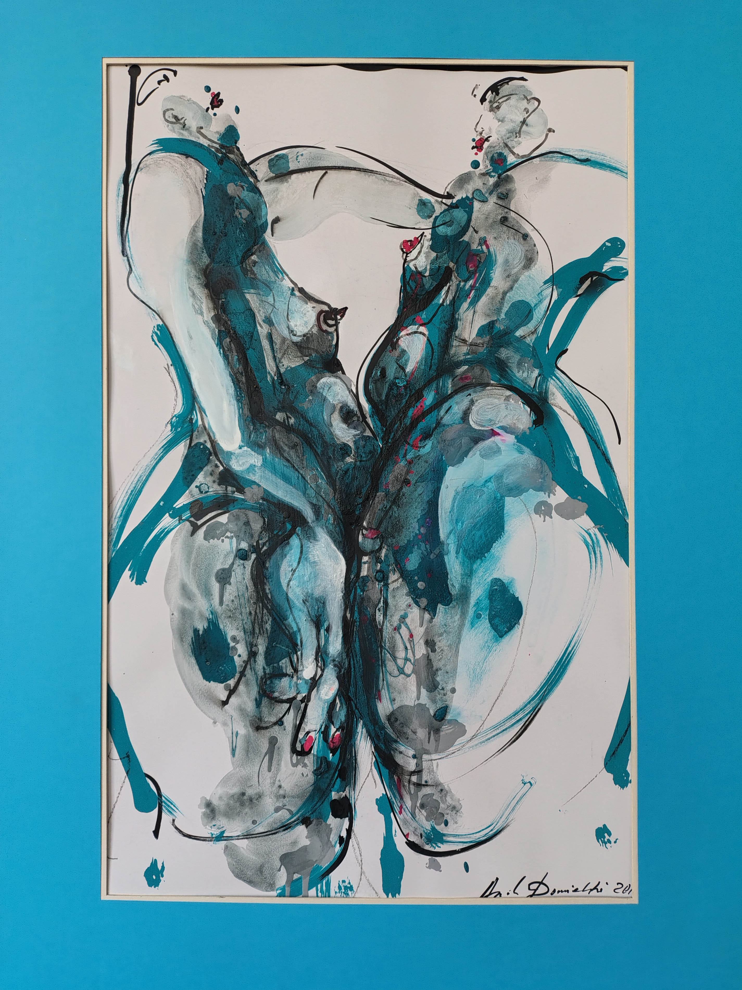 technika mieszana (tempera, akryl, tusz), tektura, 60 x 40 cm (w świetle passe-partout), w oprawie: 80 x 60 cm,