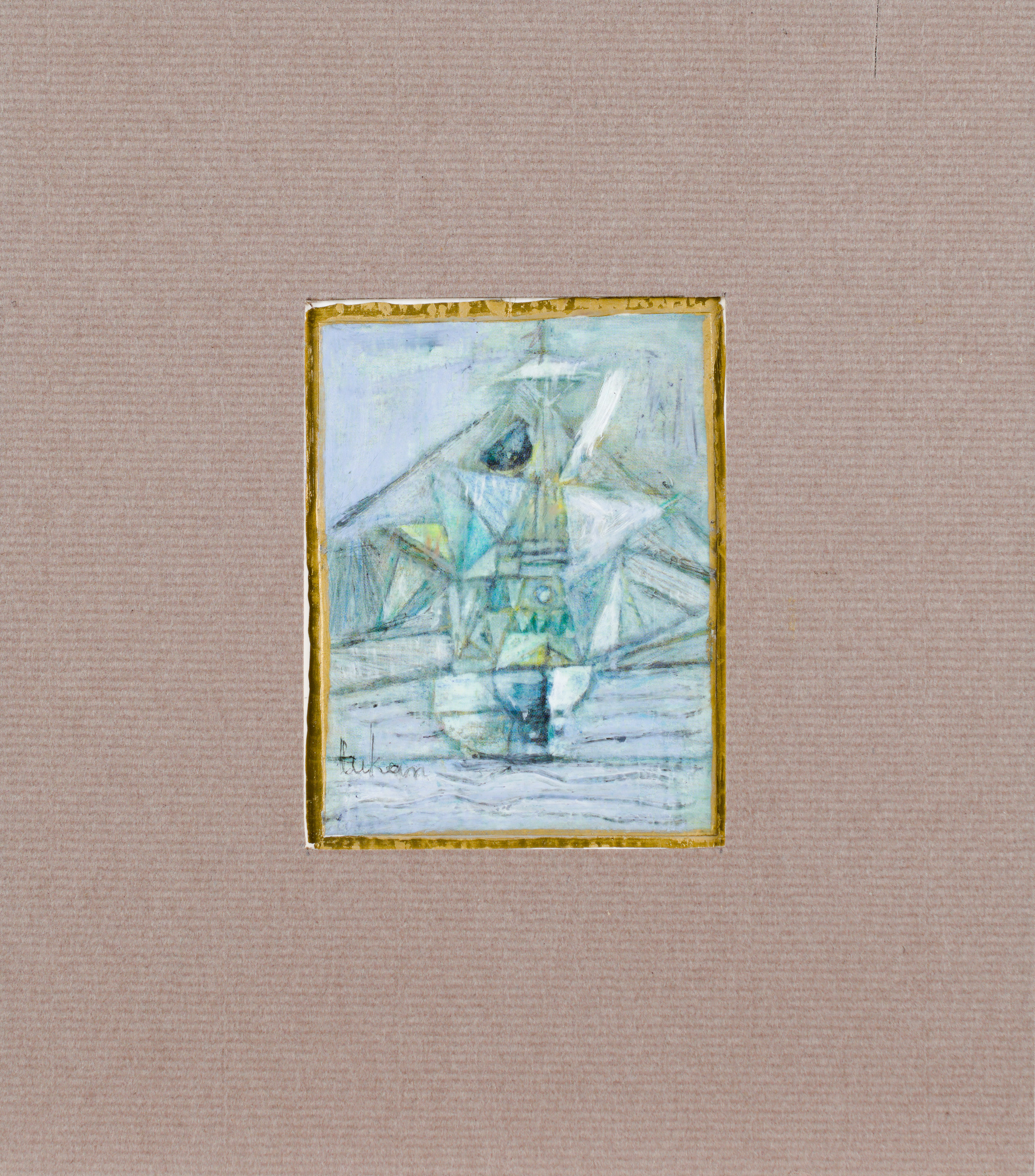 technika mieszana, papier; 7,5 x 5,7 cm (w św. passe-partout);