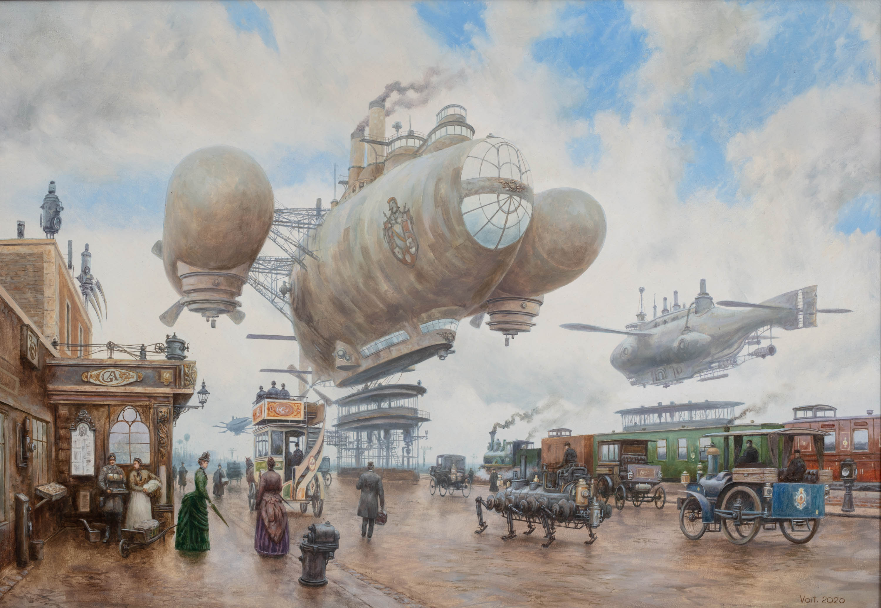 olej, płótno, 53 x 75 cm w świetle ramy,sygnowany p. d.:"Voit. 2020" i opisany ołówkiem na odwrocie: "VADIM VOITEKHOVITCH "CO LECI ZA WIATREM" | 53 X 75 | 2020"
