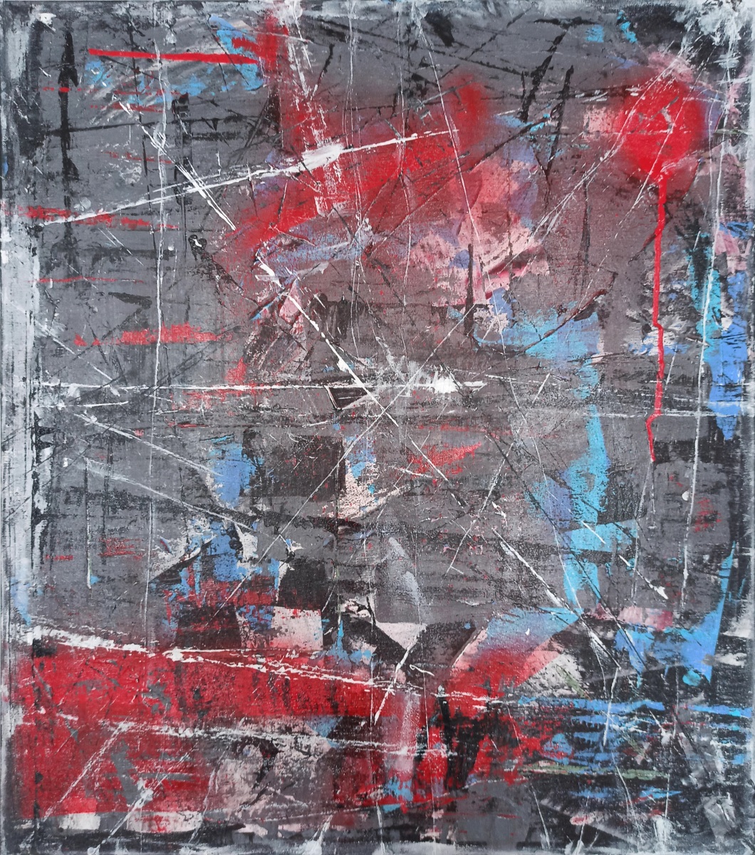 technika mieszana (akryl, spray), płótno, 70 x 60 cm,