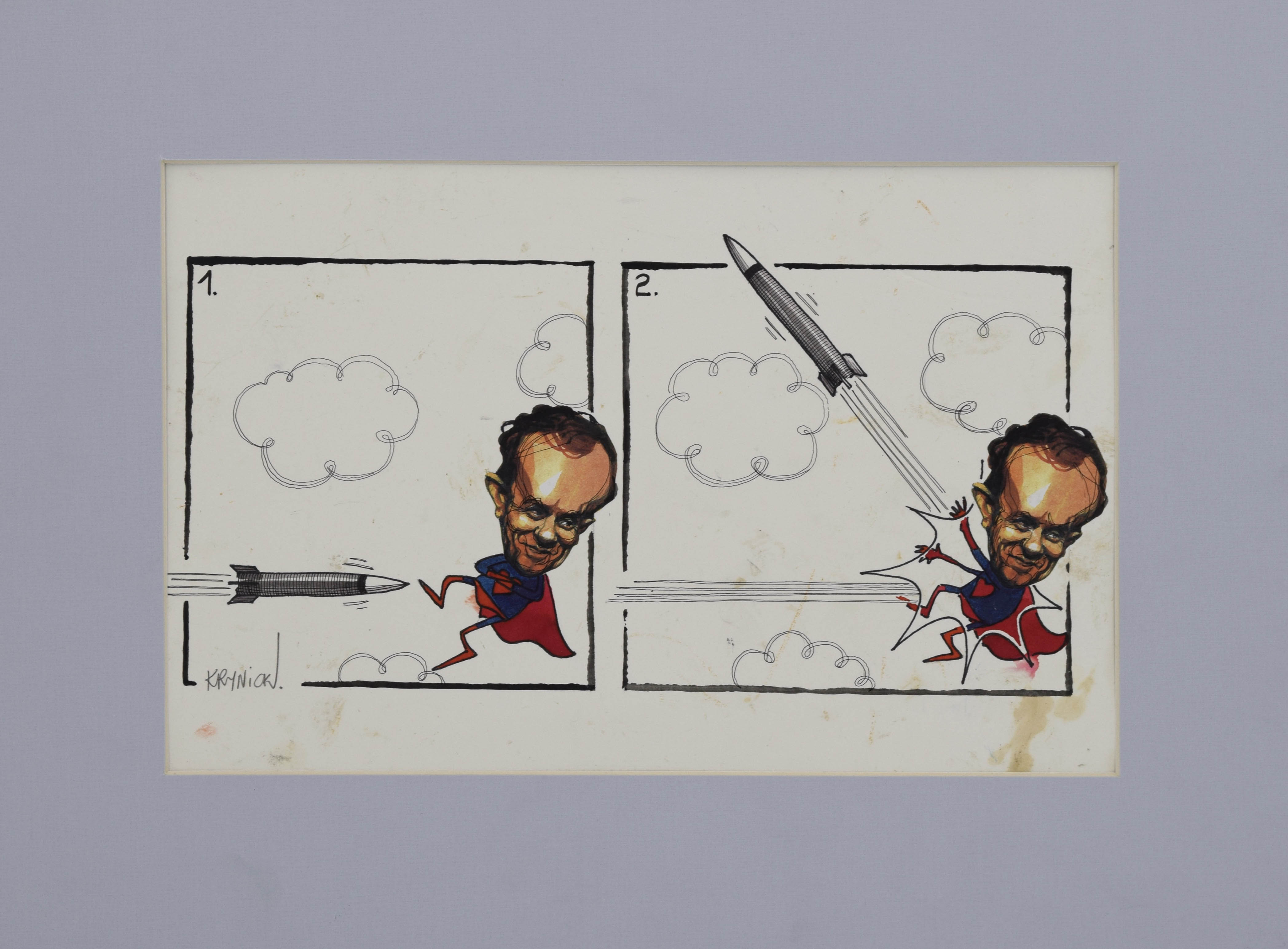 flamaster, cienkopis, akwarela, gwasz, papier; 21 x 29,5 cm;sygn. l. d.: Krynicki.Stan zach.: zabrudzenia papieru.