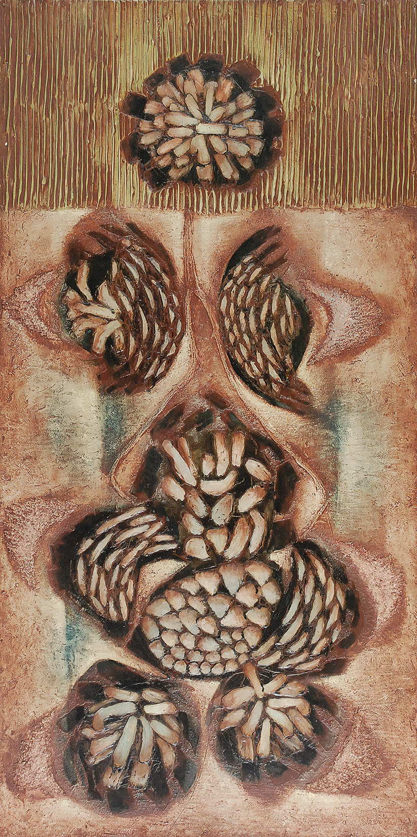 technika własna, płyta; 124 x 62,5 cm;sygn., dat. i opisany na odwrocie: ZDZISŁAW STANEK / ŚWIATŁOKWIATY, 1963.