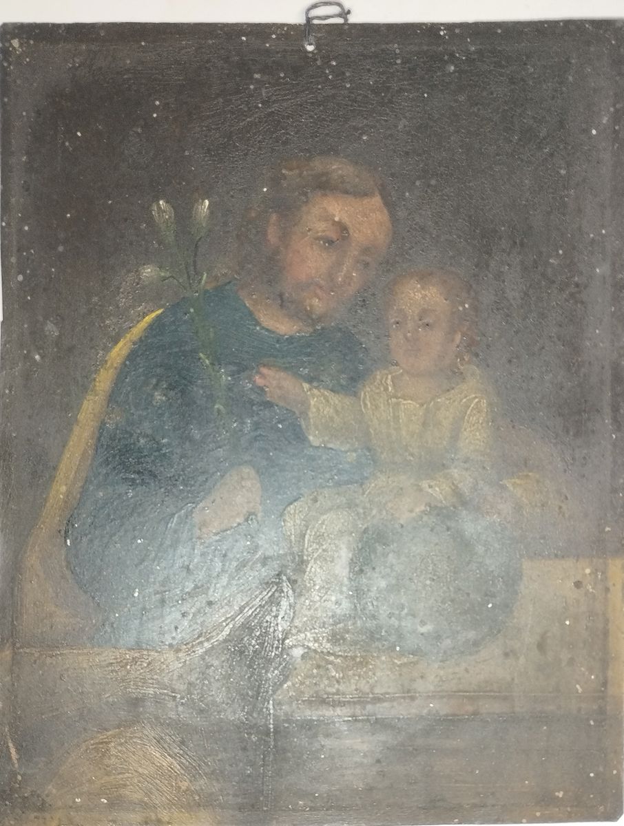 Olej, blacha żelazna, cynkowana; 16,5 x 13 cm