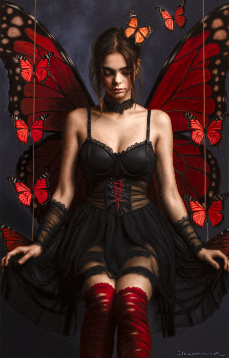 olej, płótno, 101 x 66 cm (w oprawie 118 x 82 cm),sygnowany p.d.: 'Ela Lechoszest ' 25' oraz opisany na odwrocie: 'ELA LECHOSZEST | "Swing of Illusions' | 40 x 26 | oil on linen | 2025'