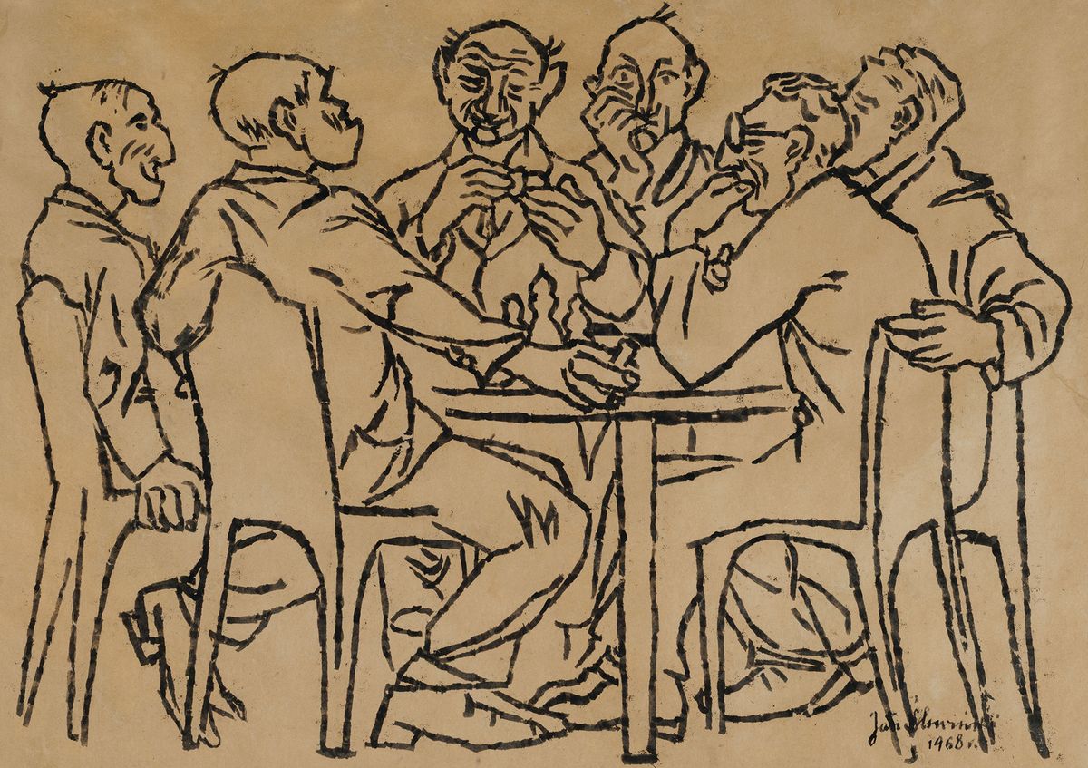Tusz, beżowy karton; 60 x 83 cm