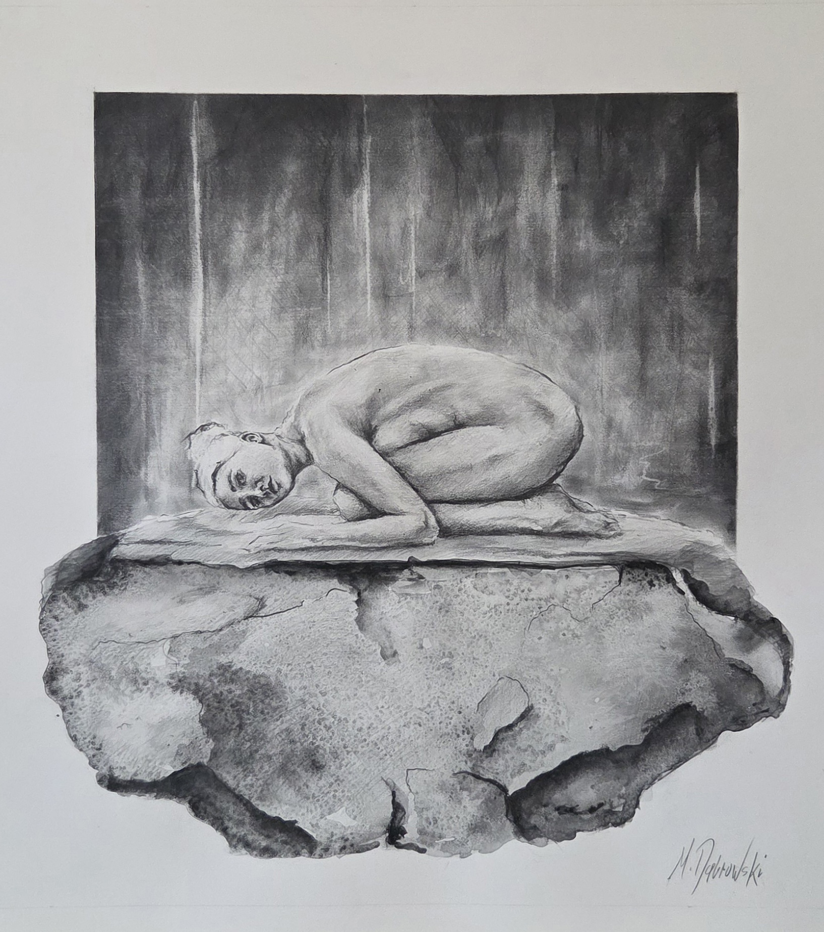 technika mieszana (ołówek, ołówek akwarelowy), papier, 41 x 37 cm,