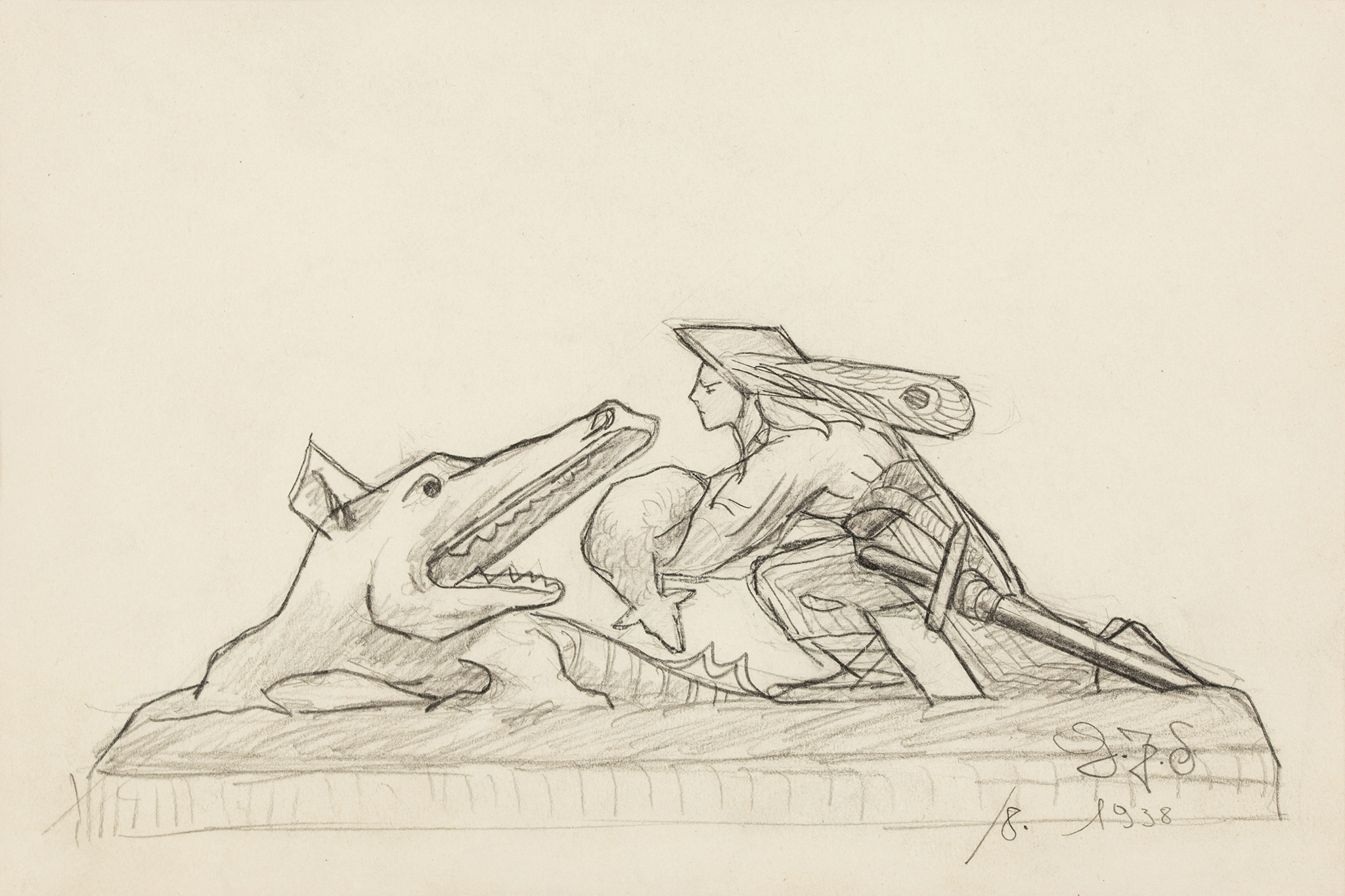 ołówek na papierze, 16 x 24,5 cmsygnowany monogramem i datowany w prawym, dolnym rogu: "G.J.S | /8. 1939".