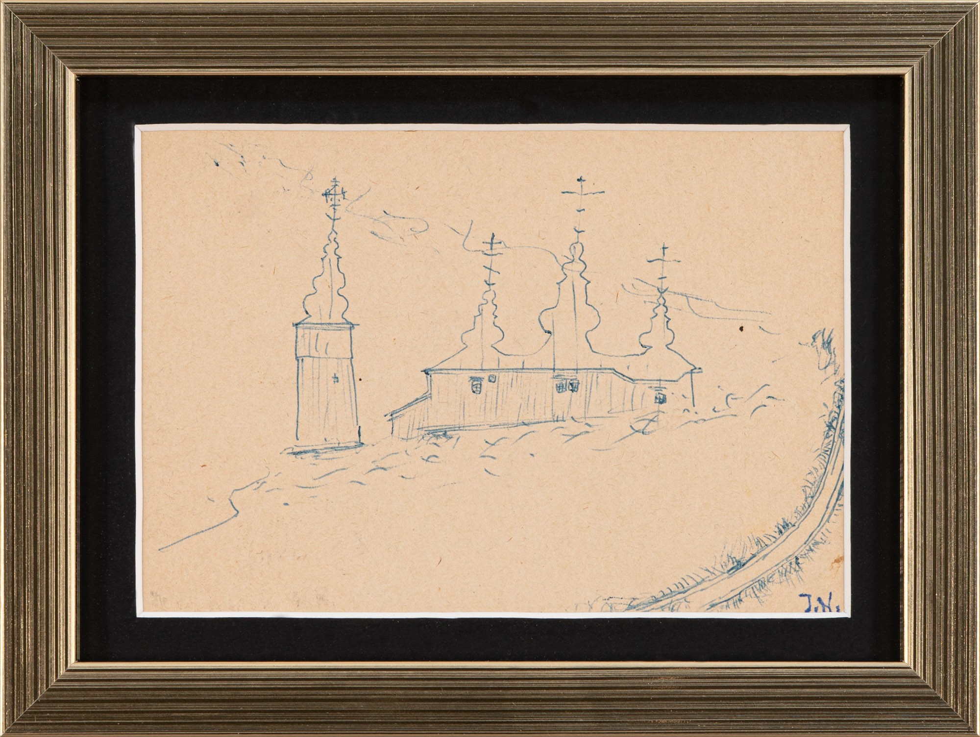 Szkic cerkwi w pejzażu