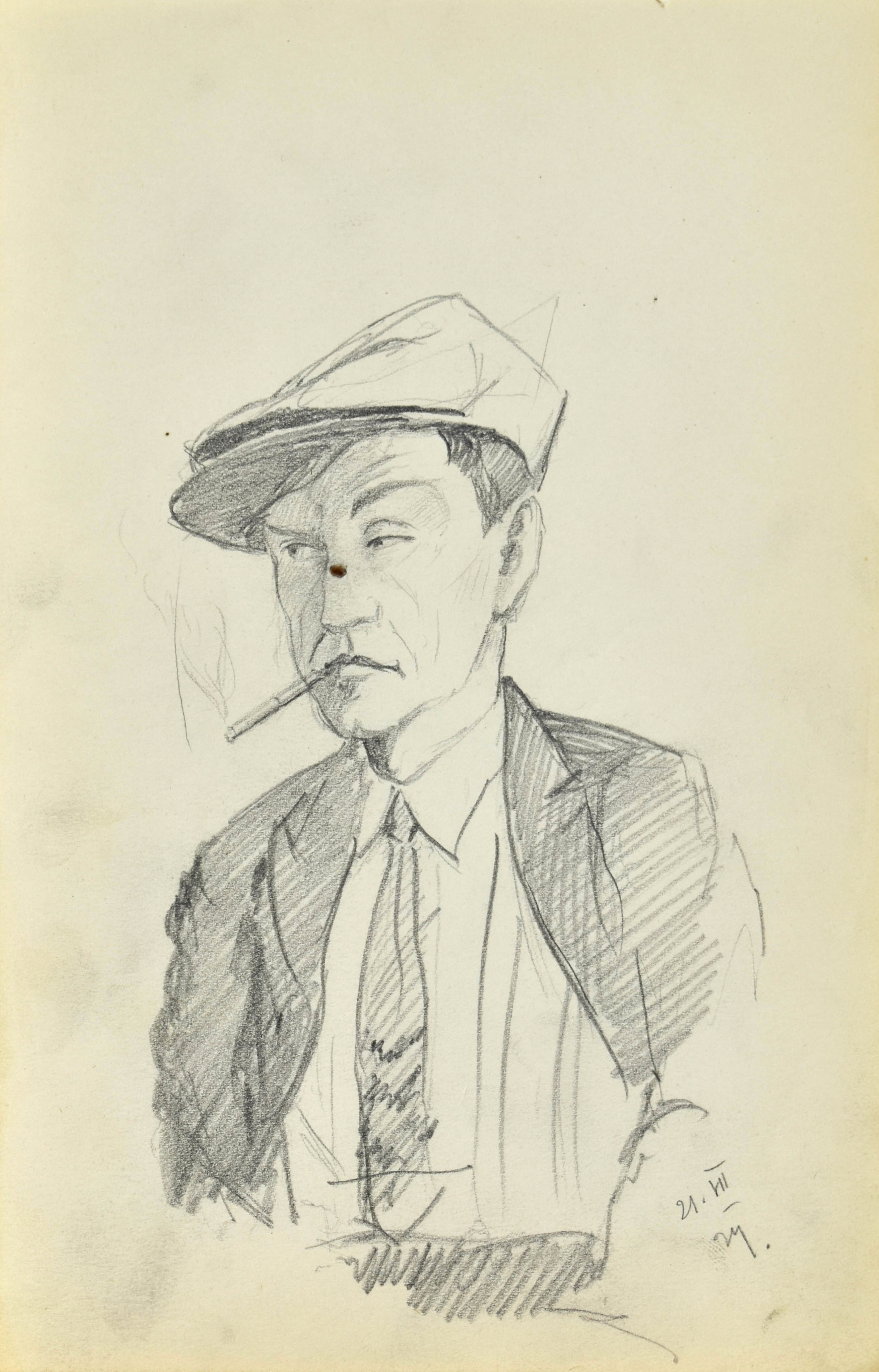 Szkic mężczyzny w czapce palącego papierosa, 1924