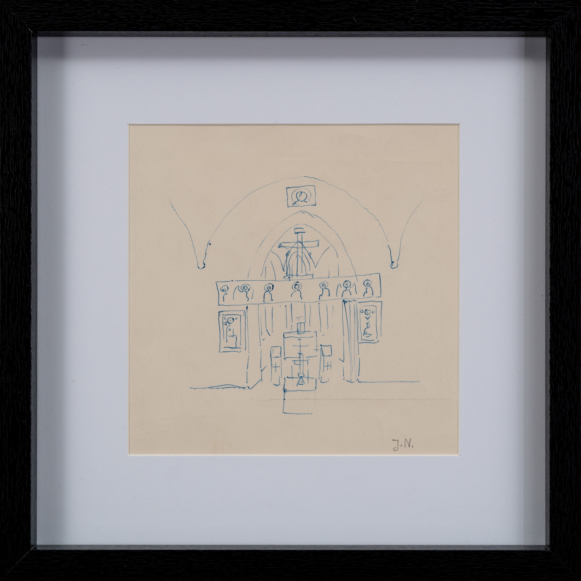 tusz niebieski, papier; 24 x 20 cm;sygn. p. d.: J. N. (ołówkiem)na odwrocie fragment okładki czasopisma