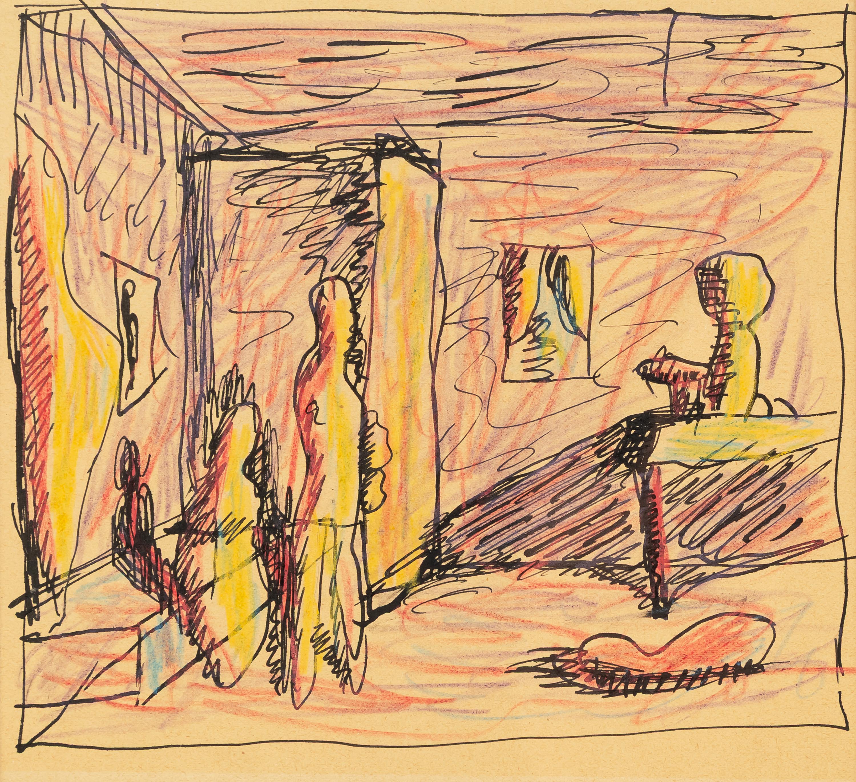 kredka, tusz, papier, 18 x 19,5 cm