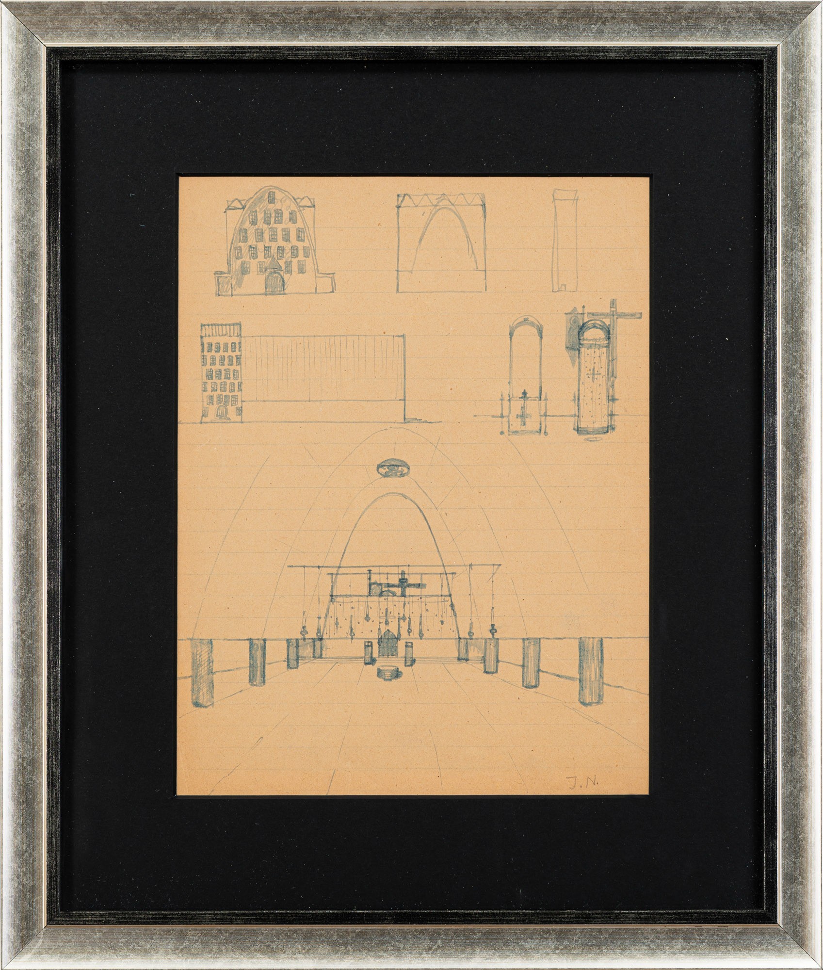 tusz, papier; 27 x 21 cm;sygn. p. d.: J. N.na odwrocie szkic wnętrza