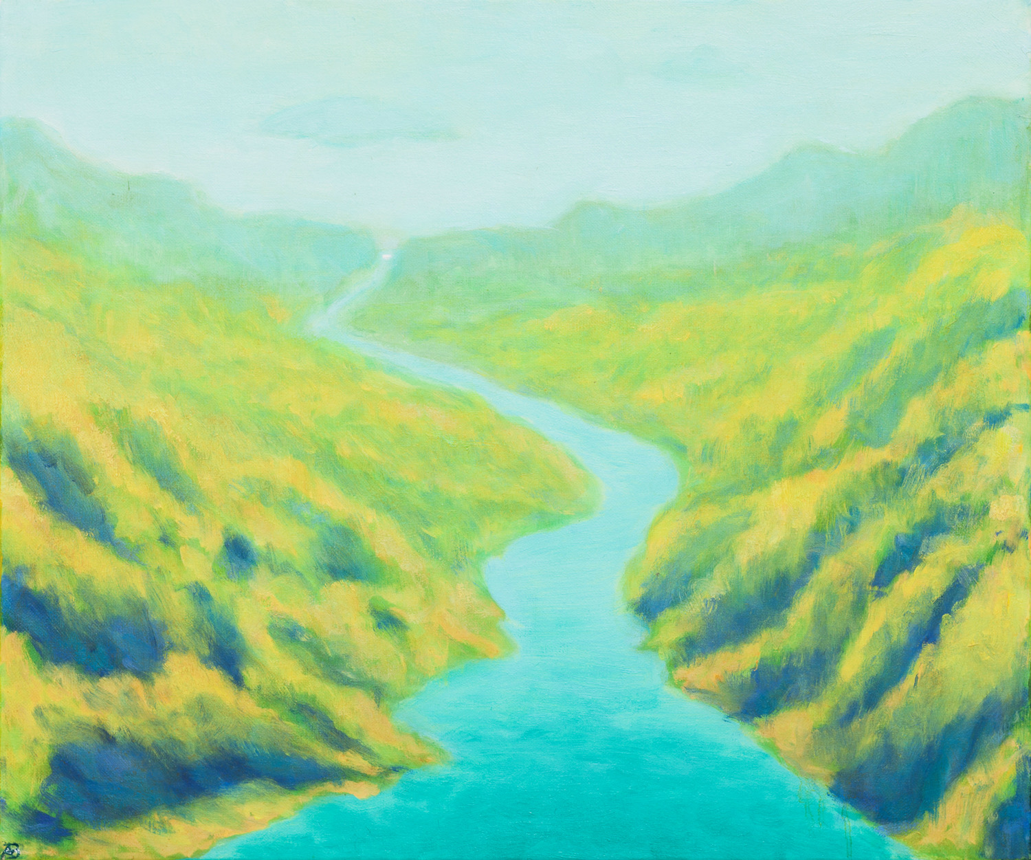 olej, płótno, 50x60 cmsygn. l.d.: AB, opisany na odwrocie: Szmaragdowa rzeka - olej Agnieszka Bykowska 2019