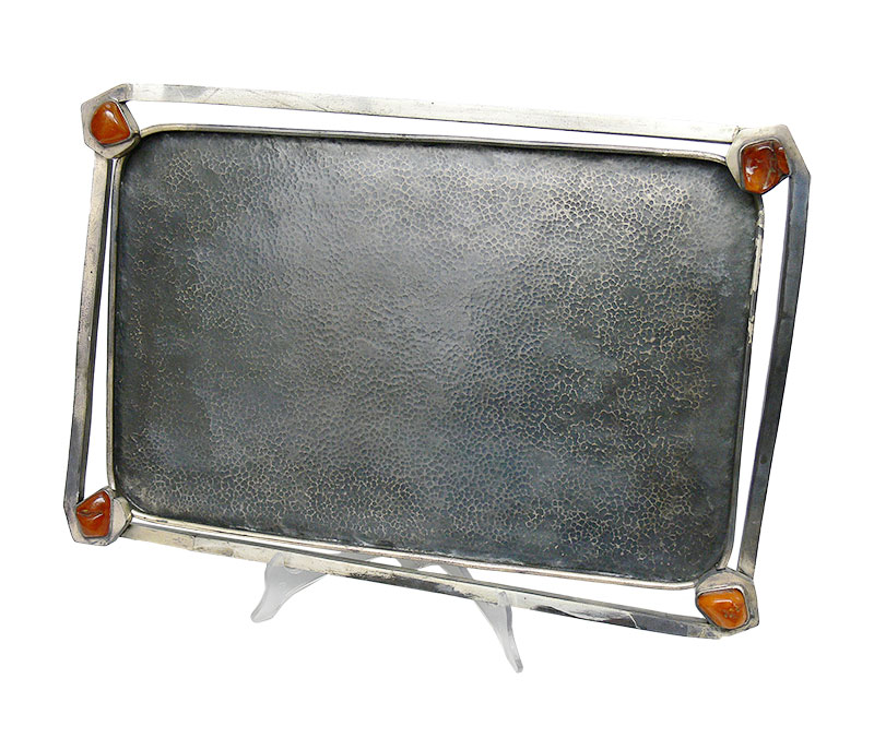 l. 70. XX w.srebro pr. 1, wykuwane, oksydowane, bursztyny, m. 2650 g, sygn. na odwrocie: SPP; wym. 52 x 36 cm