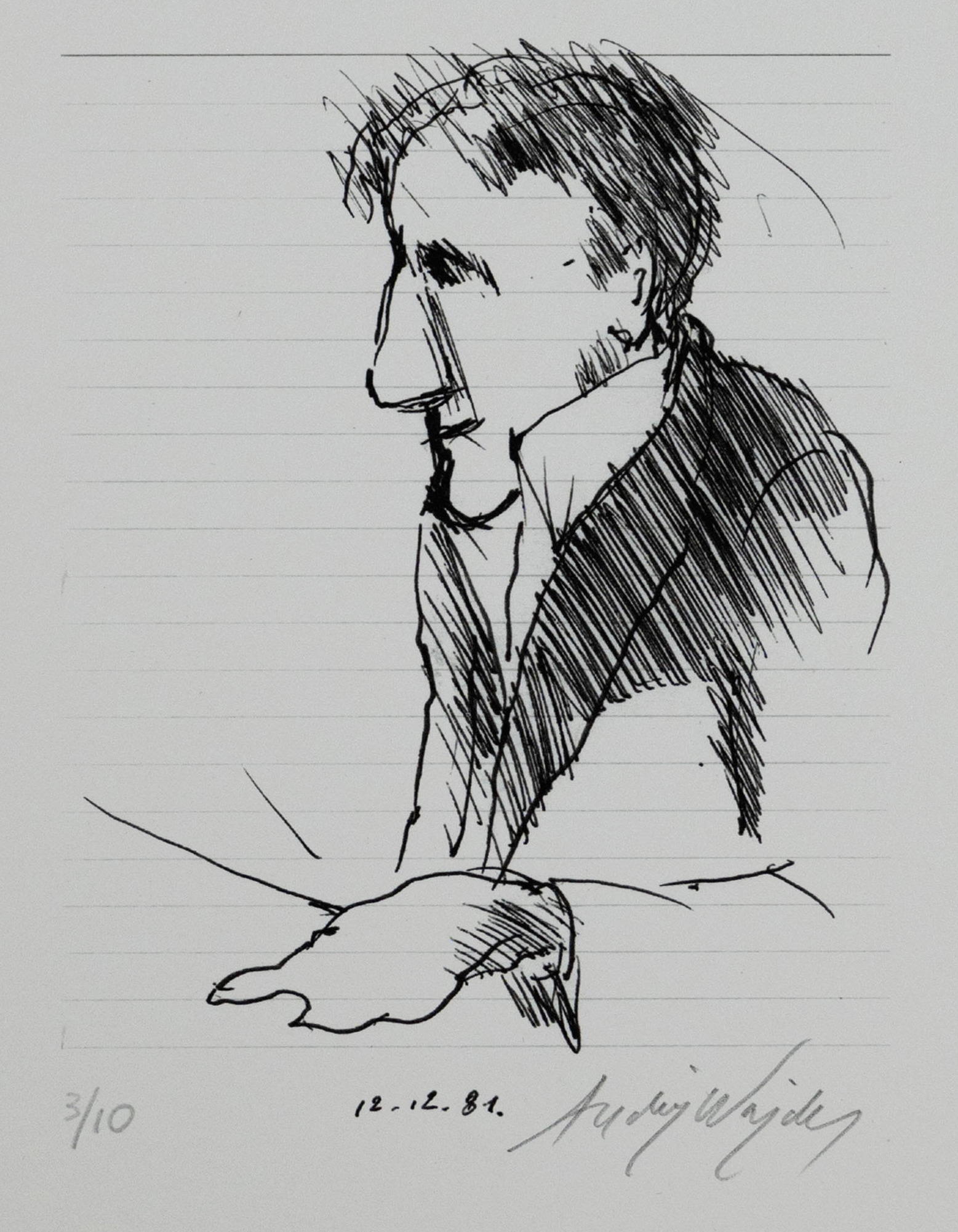 inkografia, papier Fabriano 300g zadruk: 15 x 13 cm rozmiar arkusza: 30 x 40 cm data powstania oryginału: 12.12.1981 sygn. ołówkiem: l.d.: 3/10; p.d.: Andrzej Wajda; u dołu stempel wytłoczony: ORIGINAL ART - WAJDA - LIMITED EDITION