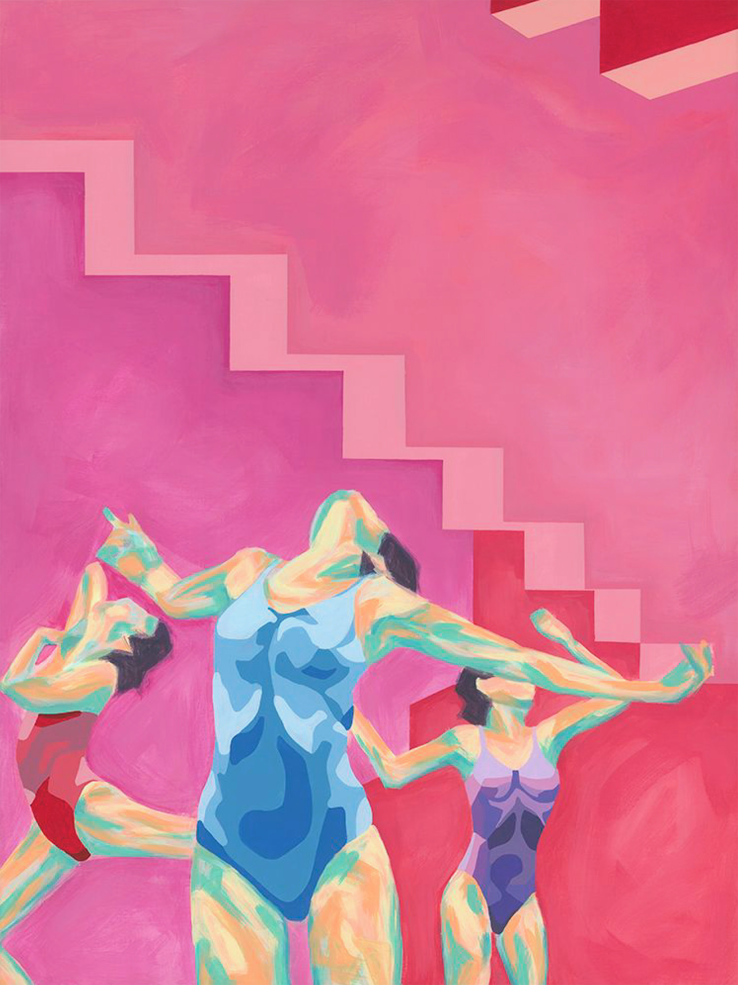 akryl, płótno, 80 x 60 cmopisany na odwrocie: Effe, Ewelina Czarniecka, "Dancers", 08.2018, 60x80cm, acrylic on linen canvas