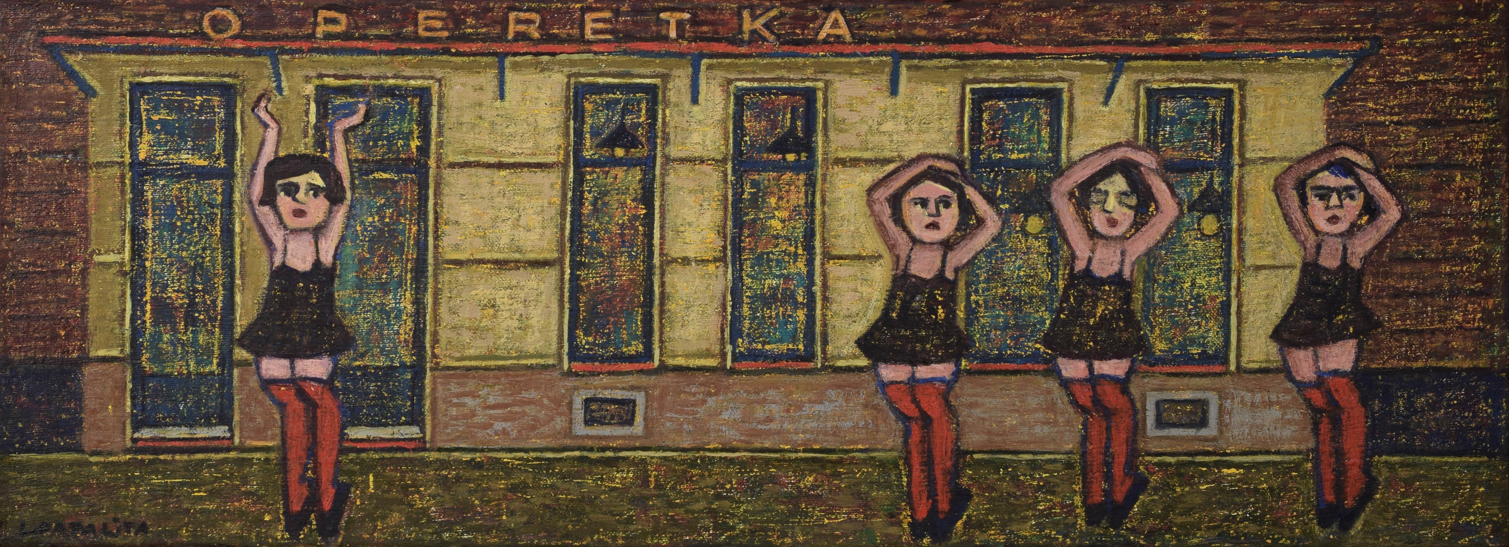 olej, płótno; 30 x 85 cm;sygn. l. d.: L. PATALITA;na odwrocie, na krośnie malarskim napis autorski: Taniec 30 x 86 2008 L. PATALITA.
