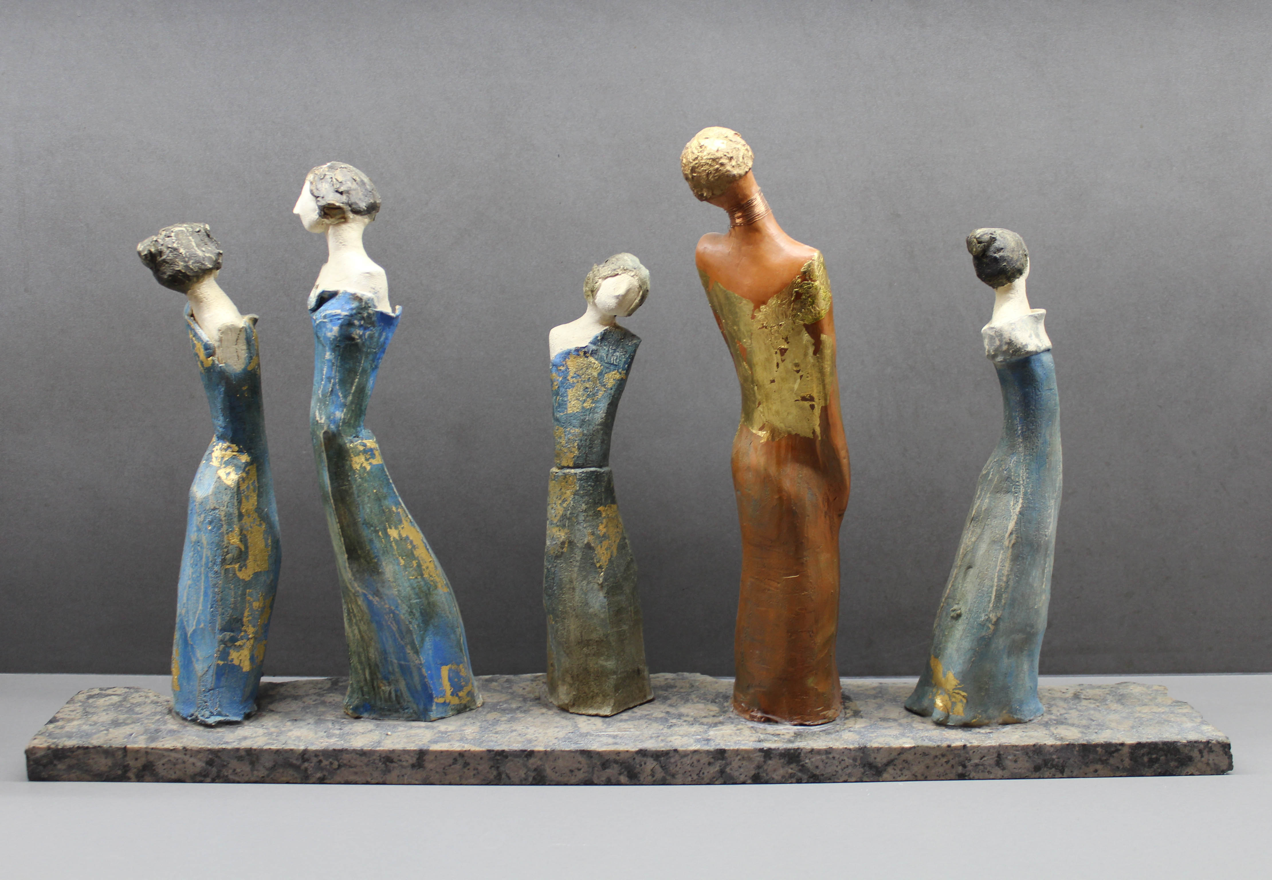 ceramika/technika własna, granitowa podstawa, 32 x 63 x 9 cm