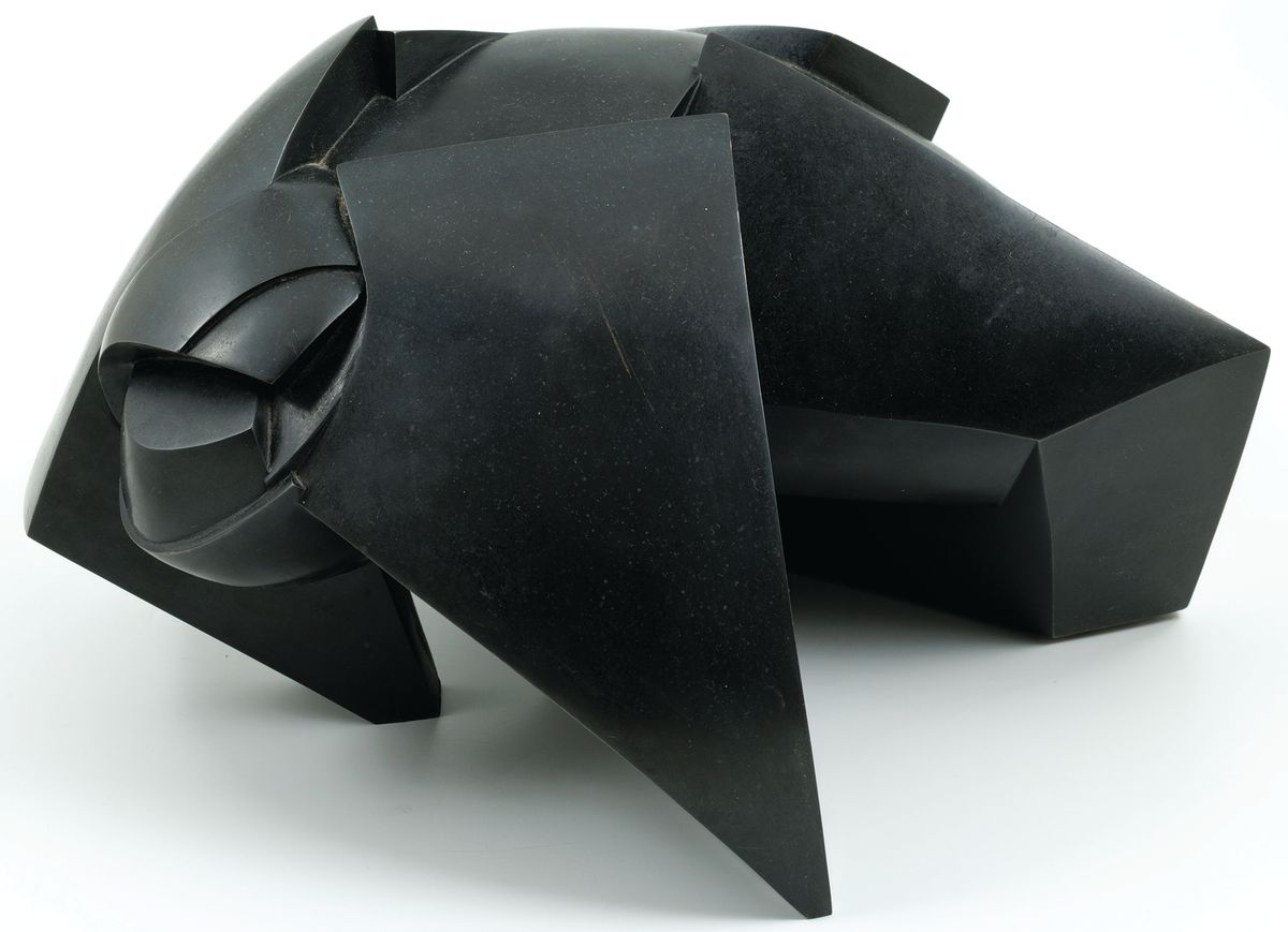Rzeźba Jacquesa Owczarka ukazuje charakterystyczny dla jego twórczości język form, w którym organiczne inspiracje spotykają się z geometrycznym uproszczeniem. Kompozycja jest zwarta i dynamiczna, oparta na mocnych, kanciastych płaszczyznach, które przecinają się i nakładają, tworząc wrażenie ruchu i energii. Mimo abstrakcyjnego charakteru dzieła, wyczuwalna jest w nim obecność istoty żywej – przypomina ona zdekonstruowane zwierzę lub mechaniczną formę, w której geometria staje się metaforą siły i rytmu natury. Ciemny, gładki materiał potęguje monumentalność i surowość obiektu, a jednocześnie nadaje mu elegancję i wyrafinowanie. Owczarek w tej pracy doskonale balansuje między abstrakcją a figuracją, między matematyczną precyzją bryły a intuicyjną ekspresją, dzięki czemu jego rzeźba emanuje jednocześnie harmonią i niepokojem.