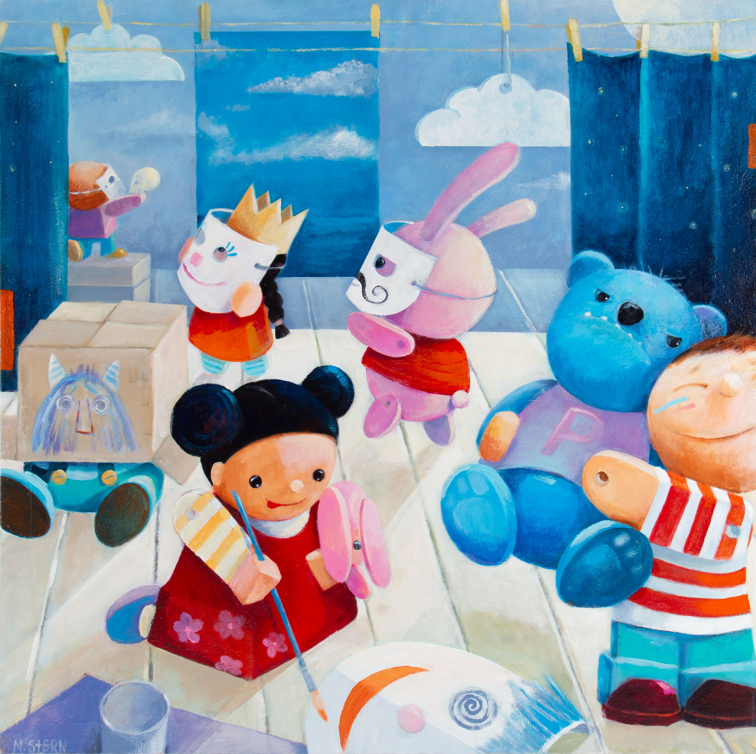 akryl, technika własna/płótno, 100 x 100 cmsygnowany, datowany i opisany na odwrociu: "TERAPIA SZTUKĄ, CZYLI SPOSÓB NA PUSZKA." :) | Mirella Stern'
