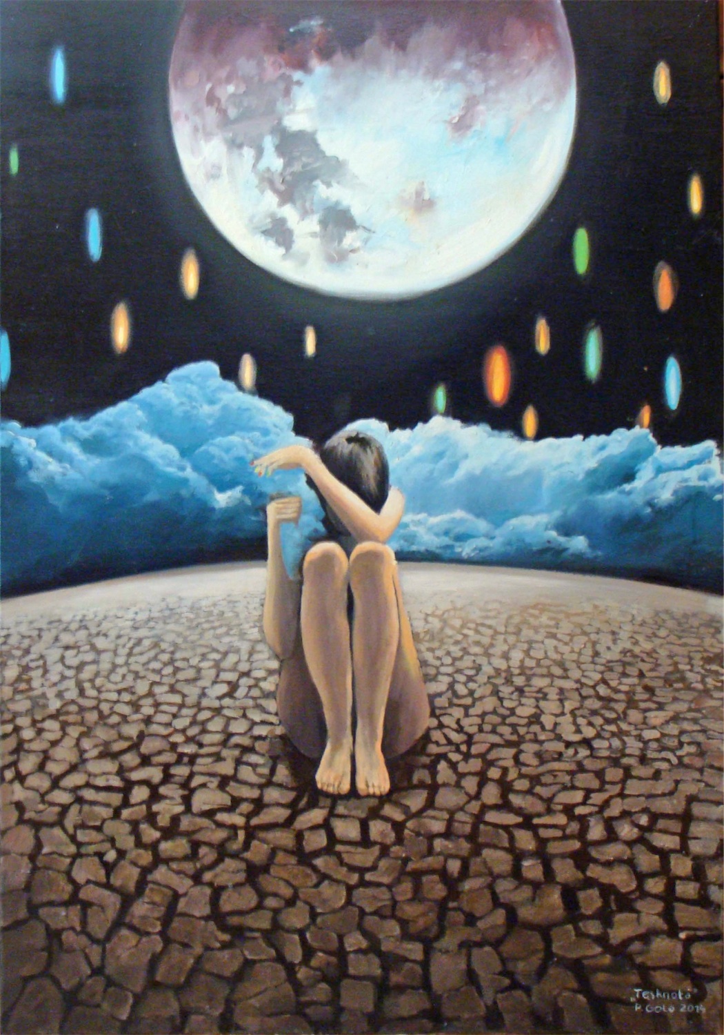 olej/płótno, 100 x 70 cm,sygnowany p.d:'"Tęsknota" | P. Gola 2014,sygnowany, datowany i opisany na odwrociu:'P. Gola 2014 | "Tęsknota'
