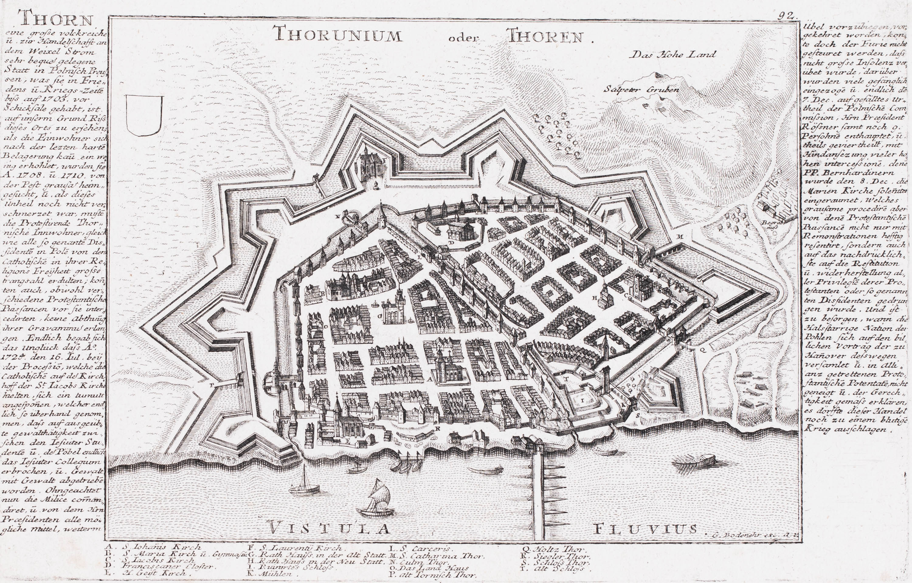 Widok Torunia z lotu ptaka, pochodzący z dzieła „Force d' Europe II“, Augsburg, 1730miedzioryt, 27 x 17,8 cm (odcisk płyty)stan zachowania bardzo dobry