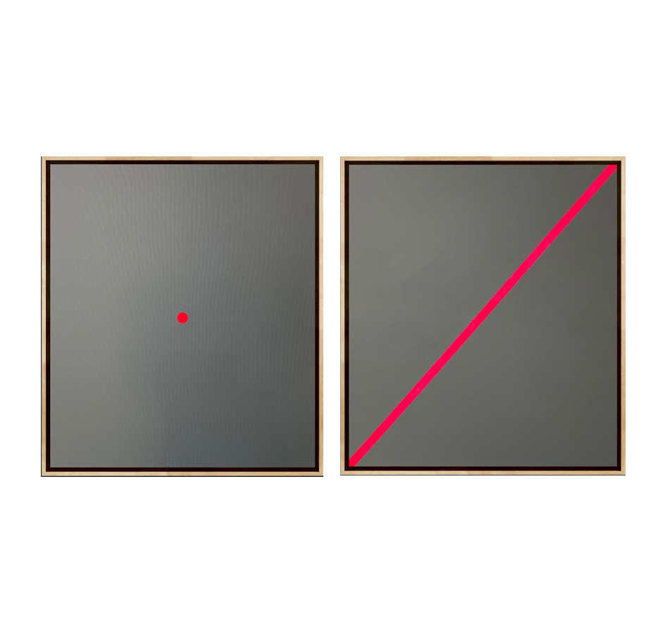 akryl/płótno, 90 x 160 cm, dyptyk,sygnowany, opisany na odwrociu: 'To the point II | Joanna Głażewska', 'Pink line | Joanna Głażewska'