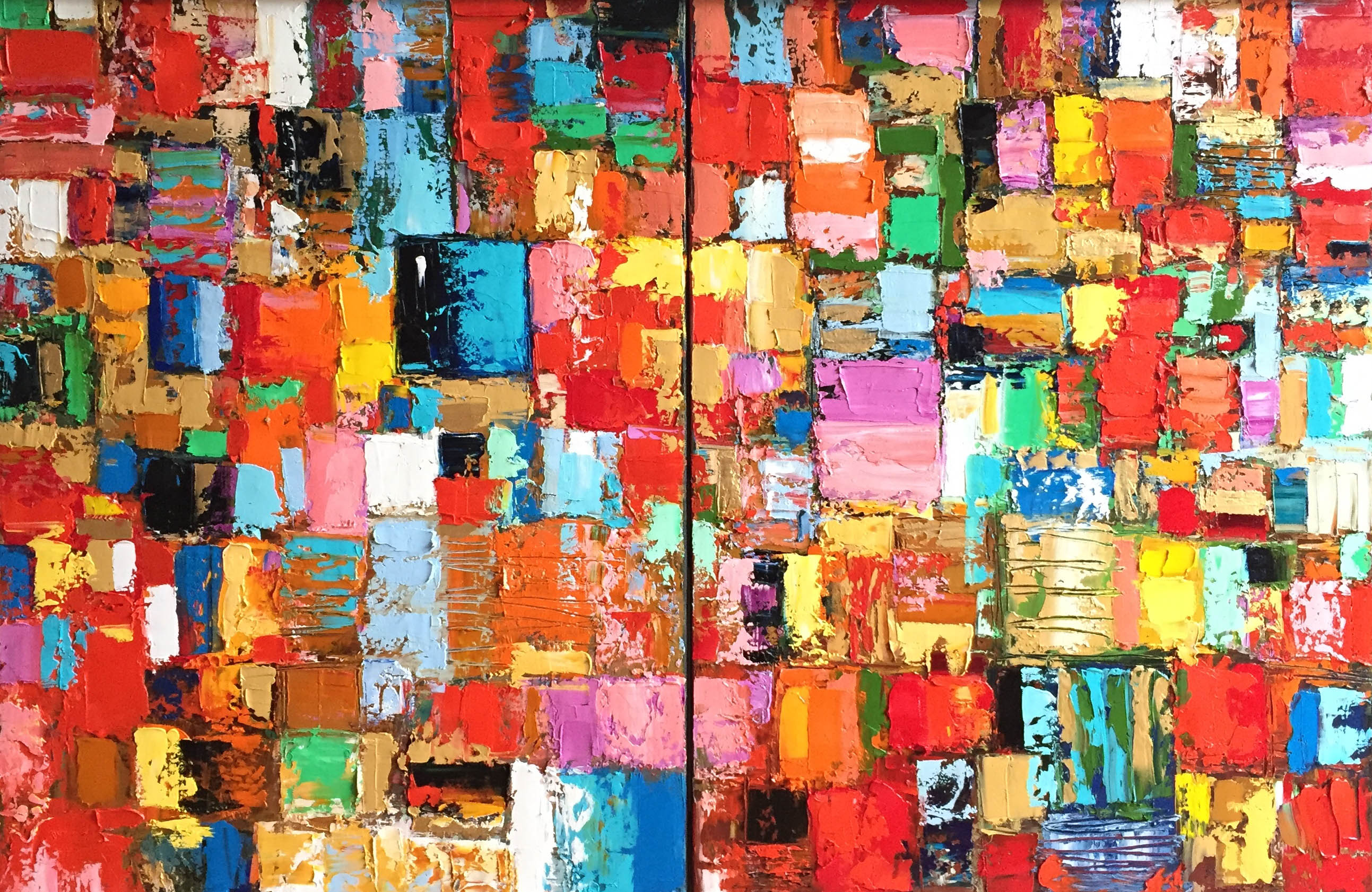 olej, płótno, 80 x 120 cm (całość; 2 płótna o wymiarach 80 x 60 cm),