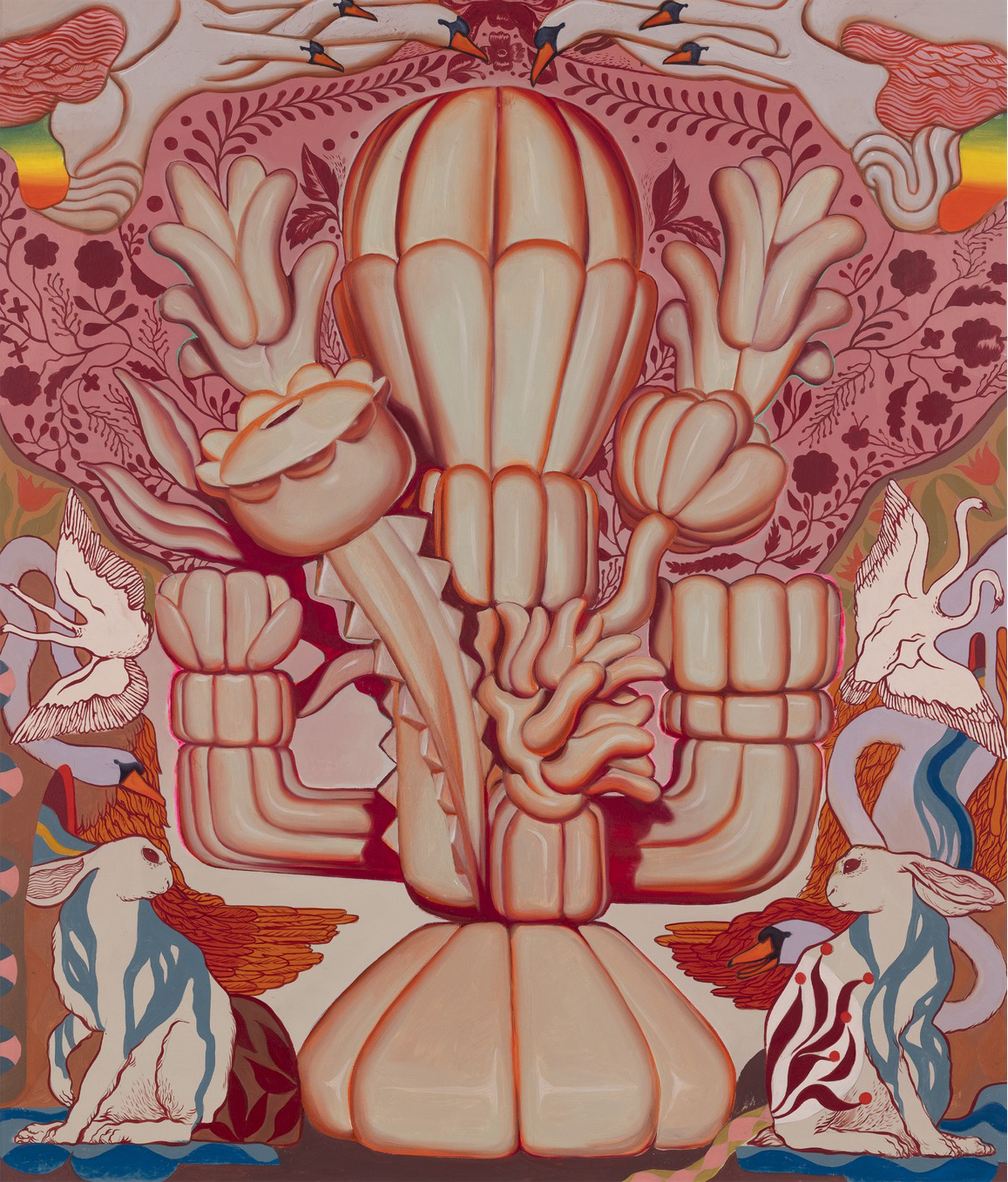 technika mieszana, 140 x 120 cm (w oprawie 168 x 148 cm),sygnowany na odwrocie: 'Tomasz Bieniek "Totem XV" '24'