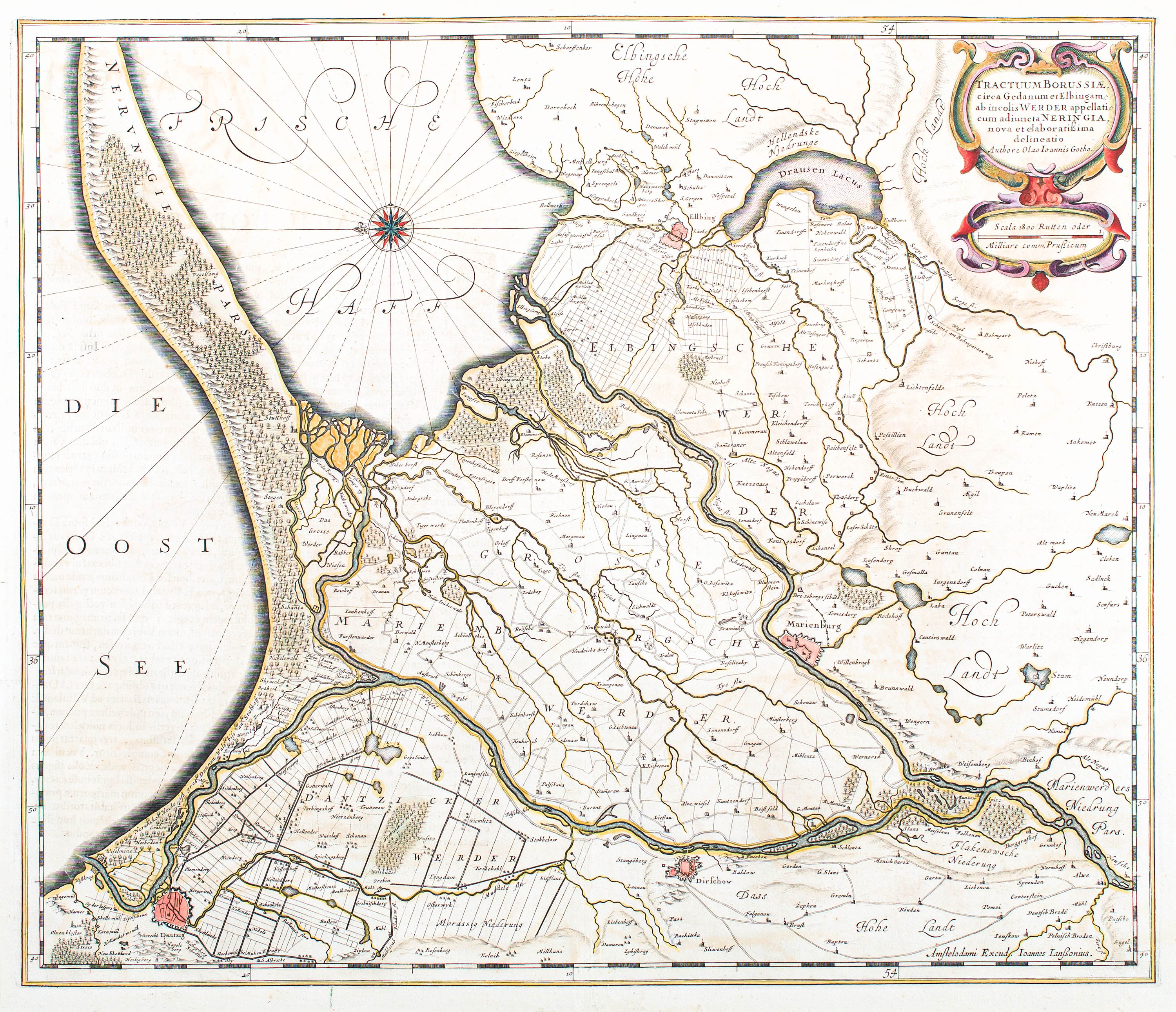 Mapa Żuław Wiślanych według Olofa Hanssona Svarta, stan pierwszy, 1641 r. Mapa opracowana do celów wojskowych jesienią 1626 r., po zajęciu Żuław Wiślanych przez wojska szwedzkie. Przedstawia ujścia Wisły między Gdańskiem, Elblągiem i Gniewem
