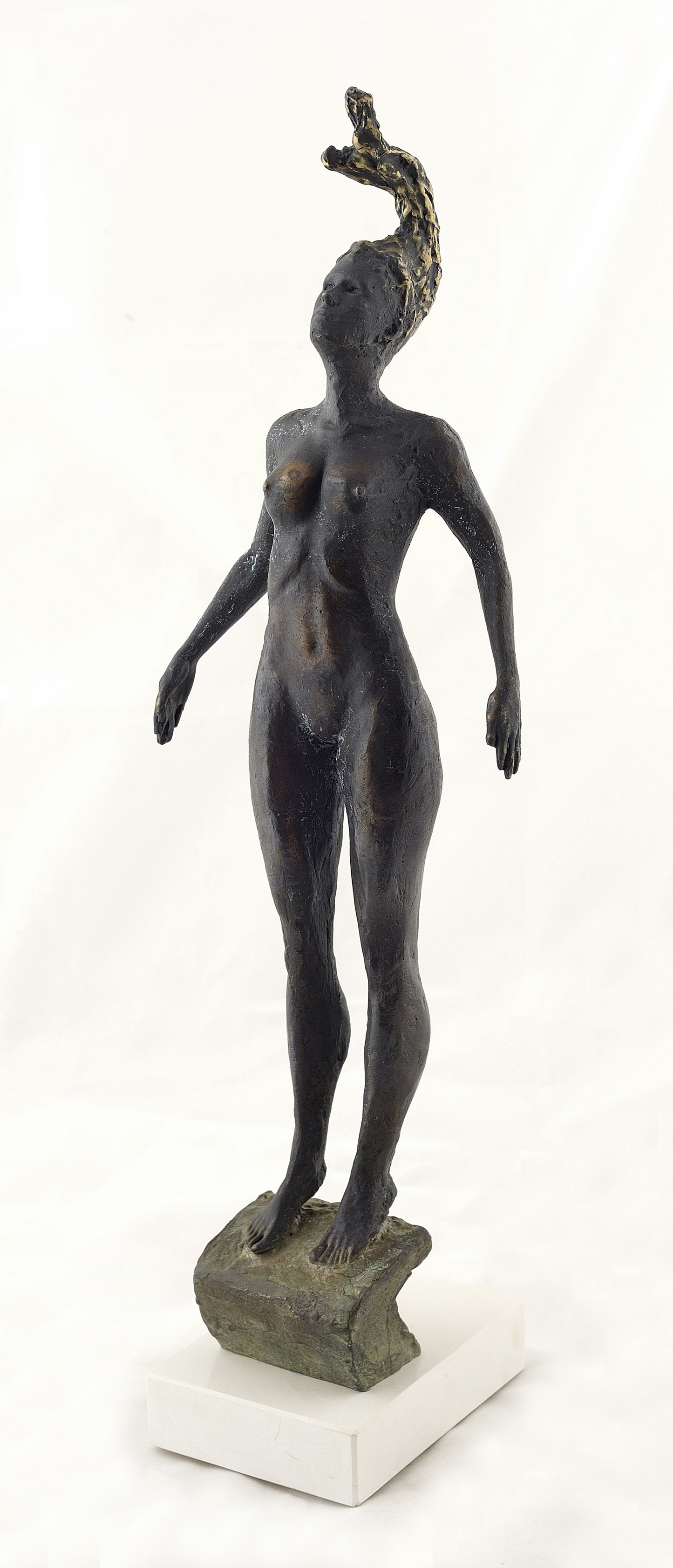 Brąz patynowany, podstawa kamienna,