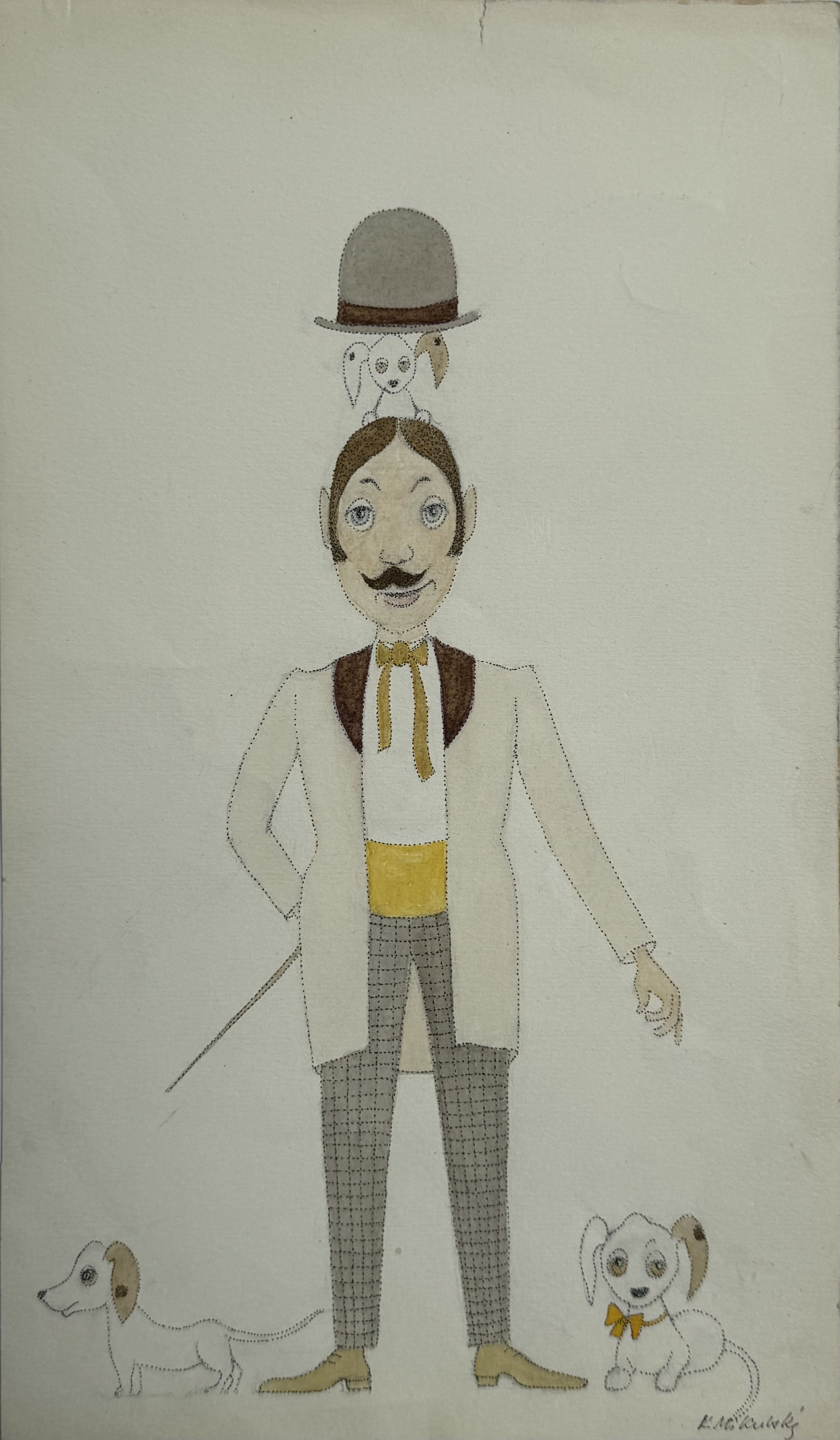 sygn. p.d.: K. Mikulski, na odwrotnej stronie opis autorski: D. Terakowska/" Cyrk Bumstarara. Proj. do spektaklu "Cyrk Bumstarara", 1985, reż. F. Leniewicz, wg. D. Terakowska.