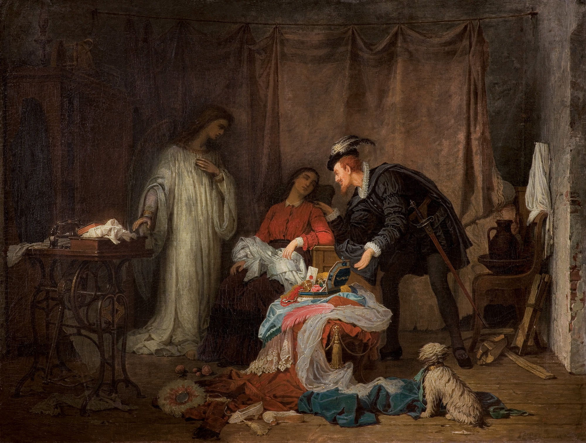 Władysław Bakałowicz (Chrzanów 1833 – Paryż 1903) kształcił się w warszawskiej Szkole Sztuk Pięknych (lata 1849-1854). W roku 1863 wyjechał do Francji i zamieszkał na stałe w Paryżu. Naturalizowany w roku 1879, jako Ladislaus (Ladislas) Bakalowicz, uczestniczył w paryskich Salonach (1865-83), wystawiał też w innych miastach francuskich, uzyskując kilkakrotnie odznaczenia i nagrody. Swoje prace pokazywał także w Brukseli, Berlinie, Wiedniu, Londynie i Nowym Jorku oraz wielokrotnie w kraju - w Warszawie (Zachęta, Salon Krywulta) i w Krakowie (TPSP). We wczesnym okresie twórczości malował widoki miejskie, pejzaże, sceny rodzajowe i obrazy z historii Polski. W Paryżu uznanie i popularność przyniosły mu przede wszystkim sceny z dziejów Francji XVI i XVII wieku, a także portrety i kameralne, salonowe kompozycje ze strojnymi damami w bogatych wnętrzach, inspirowane bądź dawnym malarstwem holenderskim, bądź bardzo wówczas popularnym malarstwem J. L. E. Messoniera. Ponadto malował (przeważnie pastelami) też nieco frywolne akty kobiece; tych obrazów nie wystawiał i zapewne od razu sprzedawał.Technicznie bardzo zdolny, wykonał mnóstwo niewielkich obrazów modnego z końca XVI lub początku XVII w. - epoki, która sumiennie wystudiował. Uczty, tańce, odwiedziny, trefnisie, pazie, Walezjusze, Buckinghamy - dostarczyli mu anegdot historycznych niezbyt głęboko pojętych oraz pretekstu do malowania starych szaf, krzeseł, dywanów, poduszek, kotar, puzder, koronkowych kołnierzów itp. rekwizytów kuchni historyczno-rodzajowego malarstwa.(E.Niewiadomski, "Malarstwo polskie XIX i XX wieku", Warszawa 1926, s. 144).