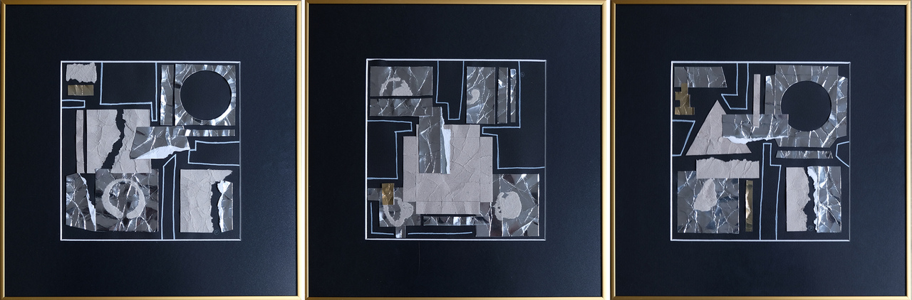 biały tusz, papier, karton, 24x24 cm x 3
