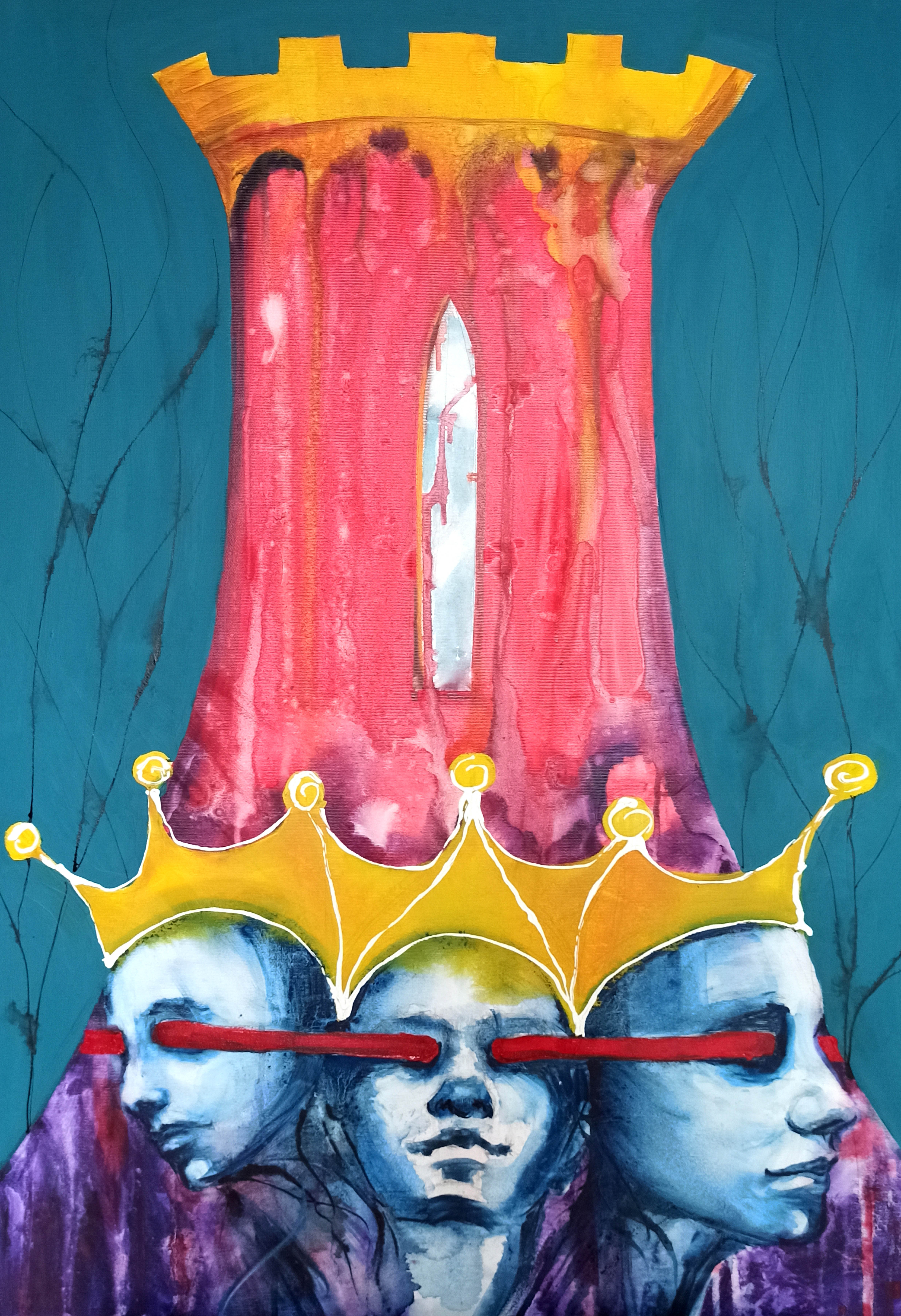 technika mieszana (akwarela, akryl), płótno, 100 x 70 cm,
