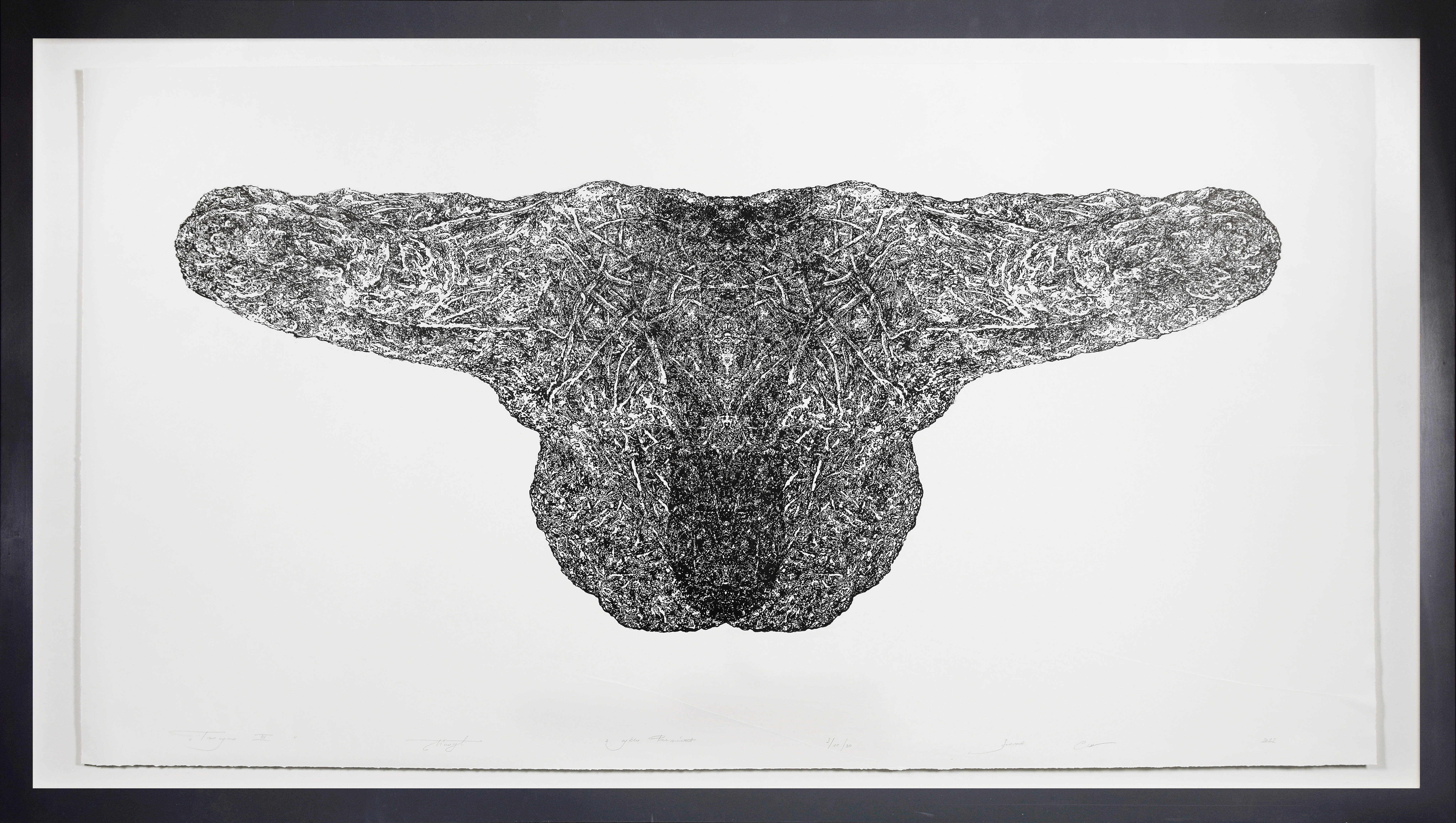 linoryt, papier (Fabriano Artistco); 74 x 150 cm (wymiar arkusza), 94 x 198 cm (wymiar z ramą)